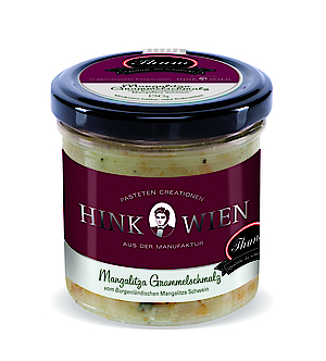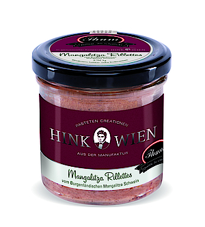 Zarte Fleischstücke vom Mangalitza Schwein raffiniert zu saftigen Rillettes verarbeitet