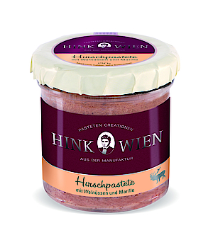 Feine Paté vom Hirsch aus dem Waldviertel verfeinert mit Walnüssen mit einem Abschluss von fruchtiger Marille