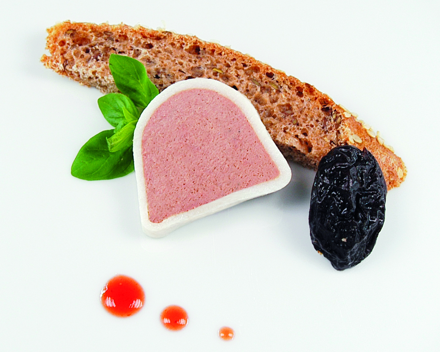 Serviervorschlag: Kalbsleber-Pastete mit knusprigem Schwarzbrot und Dörrobst