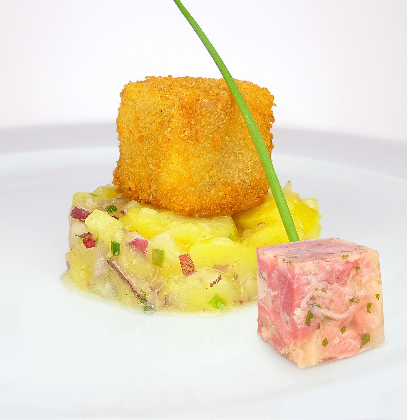 Serviervorschlag 2: In Brösel gebacken serviert auf Erdäpfel-Vogerlsalat