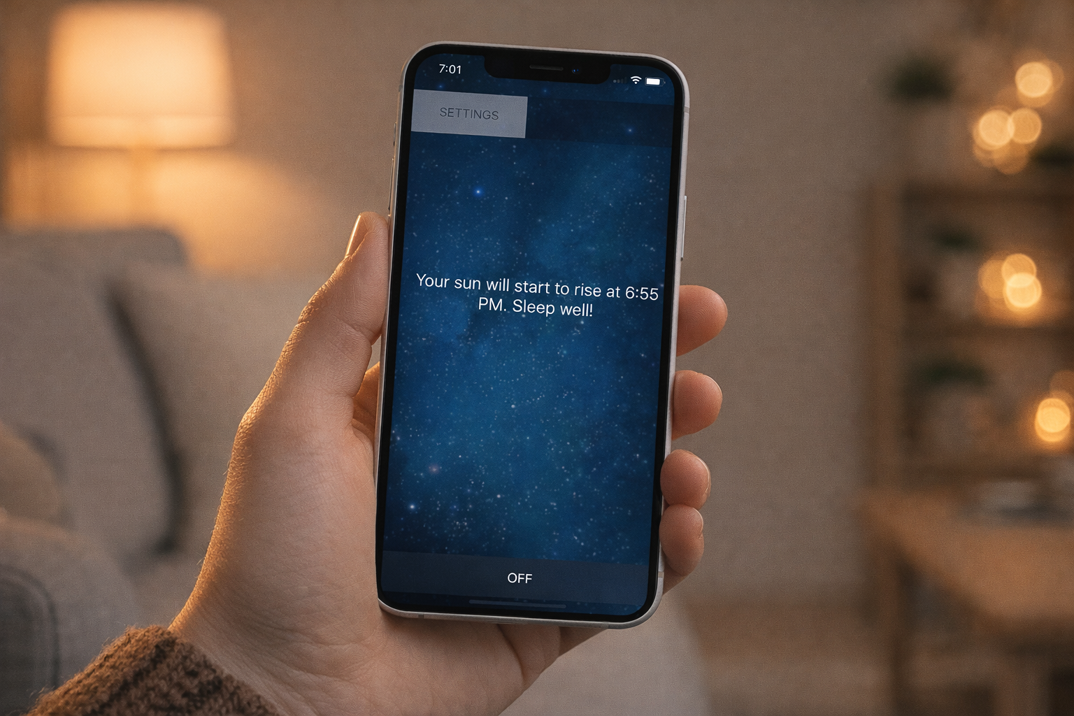 Light gradually increases. Red first – like a horizon that’s on its way. Then warm tones, then blue, then a bright, clear white that gently persuades your body to release cortisol and wake up. No panic. No shock. No existential dread at the first sound. Just light – and suddenly getting up isn’t a punishment anymore.