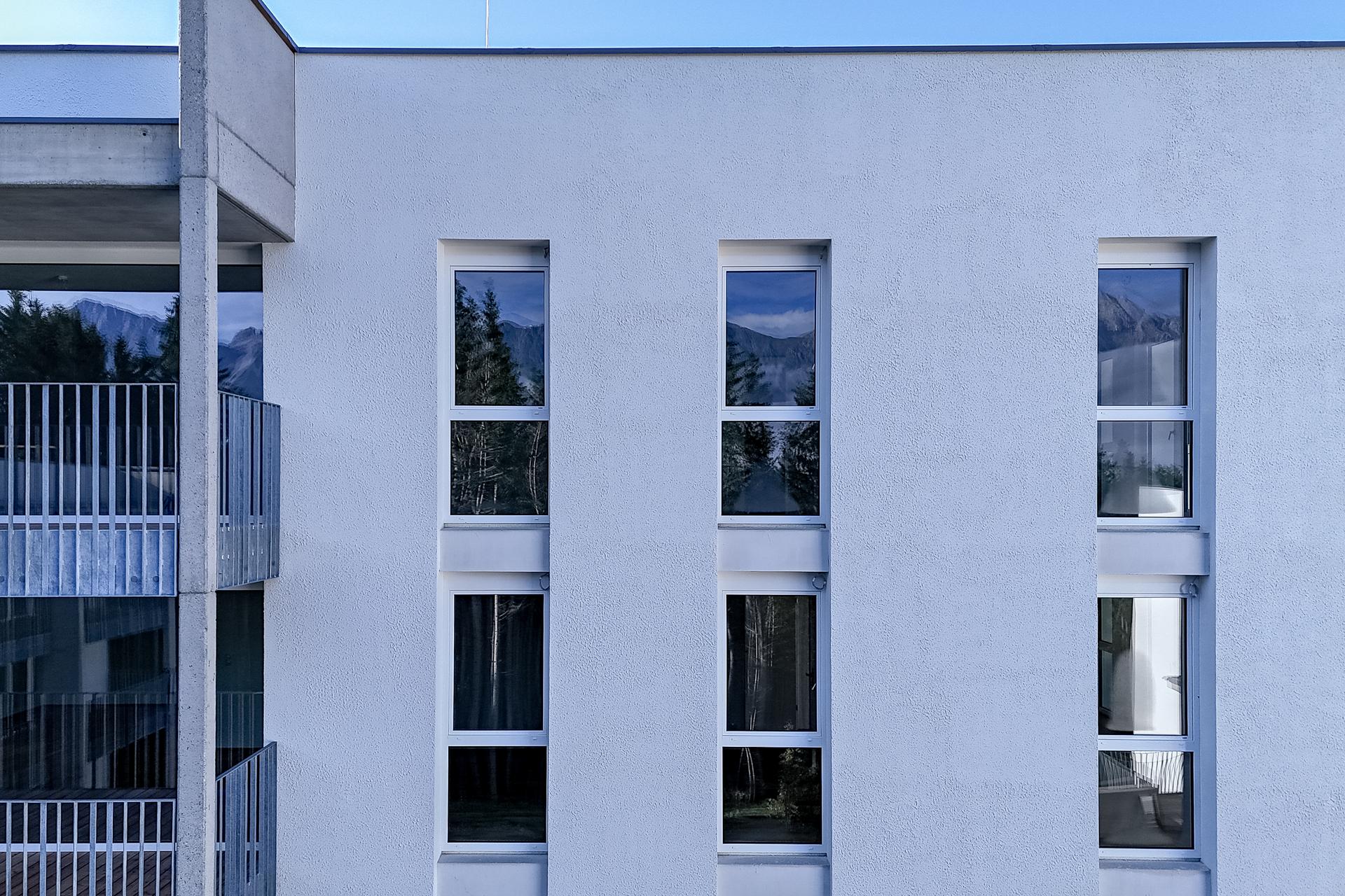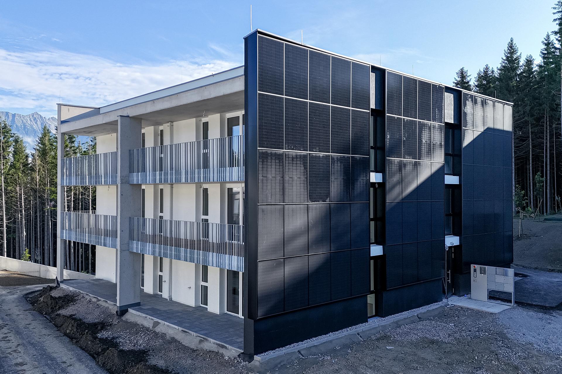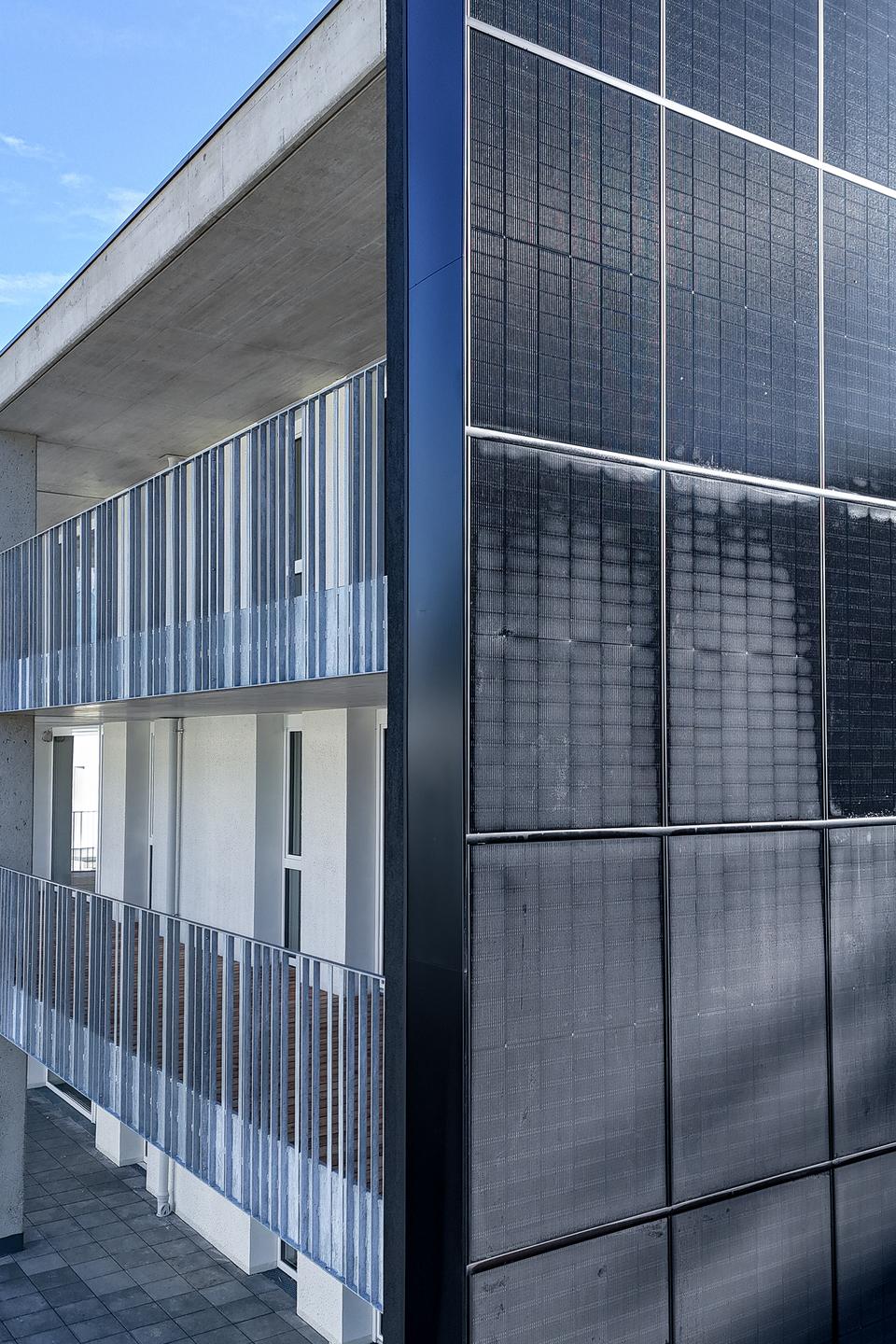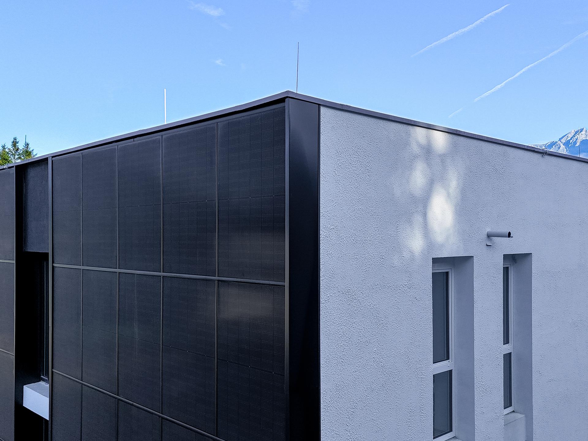 145 m² PV-Elemente in die Fassade integriert. Die Kombination aus moderner Wärmedämmung