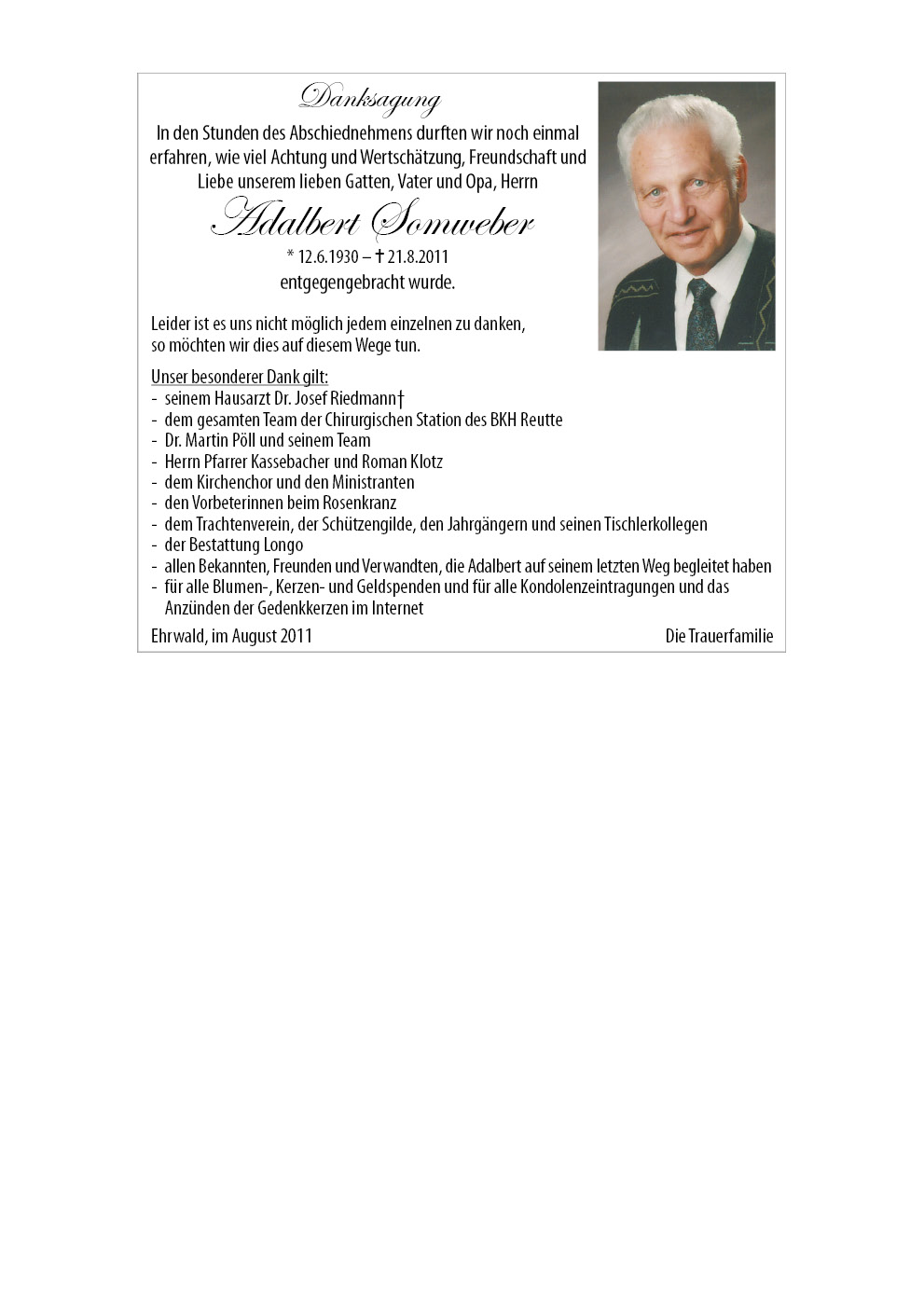 13.12.1901 21.08.2011 Ehrwald Adalbert Somweber Action Parte Sterbebild Gedenkkerzen Kondolenzen Danksagung Parte Sterbebild Gedenkkerzen Kondolenzen Danksagung Parte herunterladen Sterbebild herunterladen Gedenkkerzen für Adalbert Somweber 1 Eintrag Kerze anzünden ruhe in frieden Ihre Gedenkkerze fürAdalbert Somweber Ihr Name* Farbe auswählen Ihre Nachricht oder Name* E-Mail-Adresse* Mit dem Klicken auf "Kerze anzünden" erklären Sie sich mit unseren Datenschutzbestimmungen einverstanden. Kondolenzbuch für Adalbert Somweber 0 Einträge Kondolenz verfassen Ihr Abschiedsgruß an Adalbert Somweber Ihr Name* E-Mail-Adresse* Ihre Nachricht* Mit dem Klicken auf "Gruß absenden" erklären Sie sich mit unseren Datenschutzbestimmungen einverstanden. Danksagung herunterladen