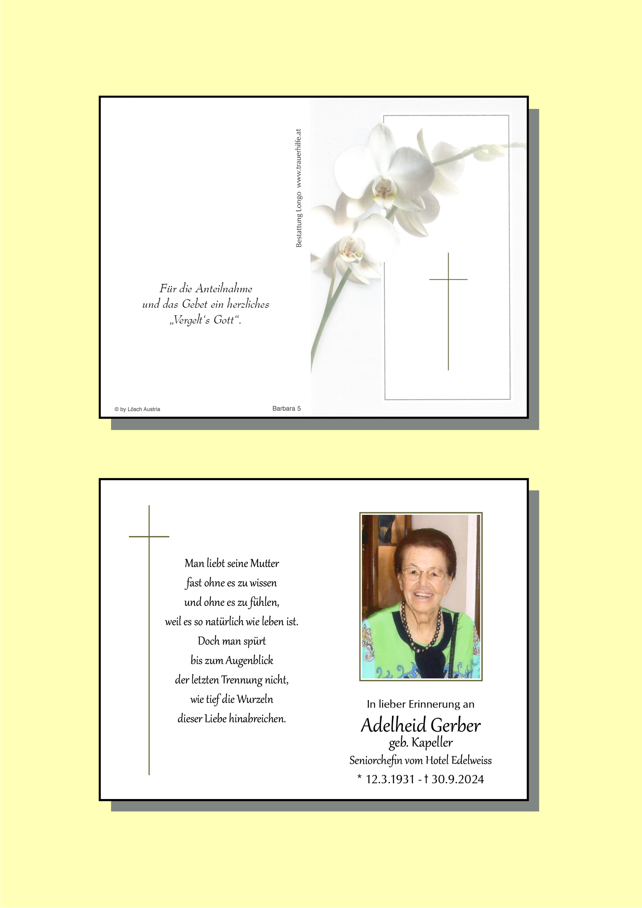 Kondolenzbuch für Adelheid Gerber