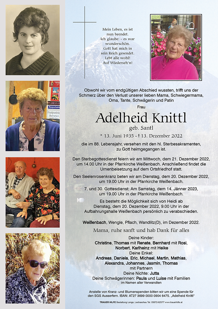 Kondolenzbuch für Adelheid Knittl