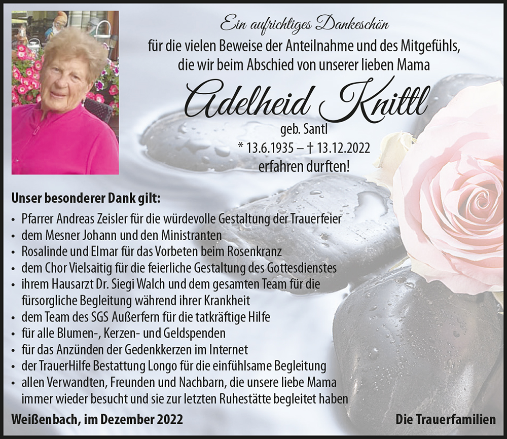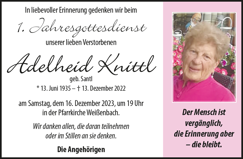 Gedenkkerzen für Adelheid Knittl