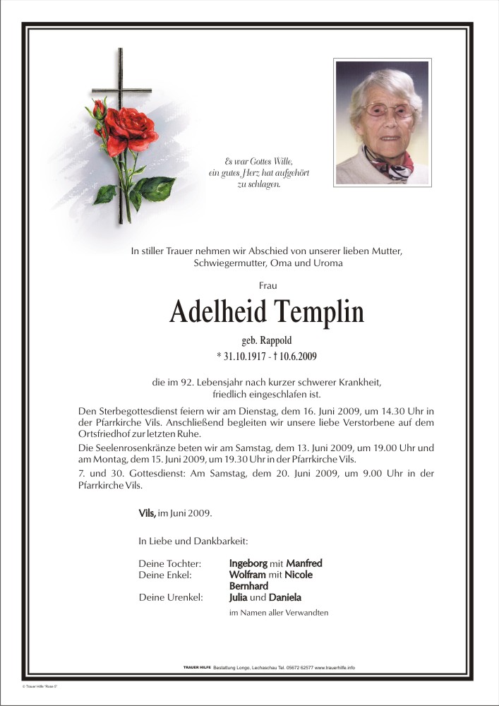 13.12.1901 10.06.2009 Vils Adelheid Templin Action Parte Gedenkkerzen Kondolenzen Parte Gedenkkerzen Kondolenzen Parte herunterladen Gedenkkerzen für Adelheid Templin 0 Einträge Kerze anzünden Ihre Gedenkkerze fürAdelheid Templin Ihr Name* Farbe auswählen Ihre Nachricht oder Name* E-Mail-Adresse* Mit dem Klicken auf "Kerze anzünden" erklären Sie sich mit unseren Datenschutzbestimmungen einverstanden. Kondolenzbuch für Adelheid Templin 0 Einträge Kondolenz verfassen Ihr Abschiedsgruß an Adelheid Templin Ihr Name* E-Mail-Adresse* Ihre Nachricht* Mit dem Klicken auf "Gruß absenden" erklären Sie sich mit unseren Datenschutzbestimmungen einverstanden.