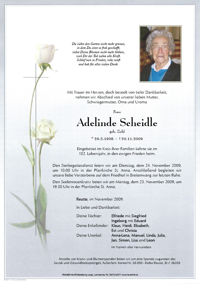 13.12.1901 20.11.2009 Reutte Adelinde Scheidle Action Parte Gedenkkerzen Kondolenzen Parte Gedenkkerzen Kondolenzen Parte herunterladen Gedenkkerzen für Adelinde Scheidle 10 Einträge Kerze anzünden In lieber Erinnerung,Lisi ? In lieber Erinnerung,Lisi ? In lieber Erinnerung, Lisi In lieber Erinnerung, Lisi In lieber Erinnerung,Lisi In stillem Gedenken, Lisi Unvergessen Oma, Lisi In stillem Gedenken, Lisi Denk oft an Dich Oma! Lisi Denk oft an Dich Oma! Lisi Ihre Gedenkkerze fürAdelinde Scheidle Ihr Name* Farbe auswählen Ihre Nachricht oder Name* E-Mail-Adresse* Mit dem Klicken auf "Kerze anzünden" erklären Sie sich mit unseren Datenschutzbestimmungen einverstanden. Kondolenzbuch für Adelinde Scheidle 0 Einträge Kondolenz verfassen Ihr Abschiedsgruß an Adelinde Scheidle Ihr Name* E-Mail-Adresse* Ihre Nachricht* Mit dem Klicken auf "Gruß absenden" erklären Sie sich mit unseren Datenschutzbestimmungen einverstanden.