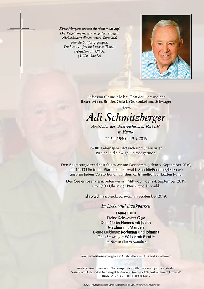 Kondolenzbuch für Adi Schmitzberger