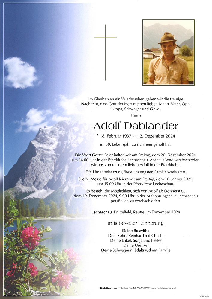 Ich möchte euch auf diesem Wege mein aufrichtiges Beileid zum Tod von Adolf aussprechen.