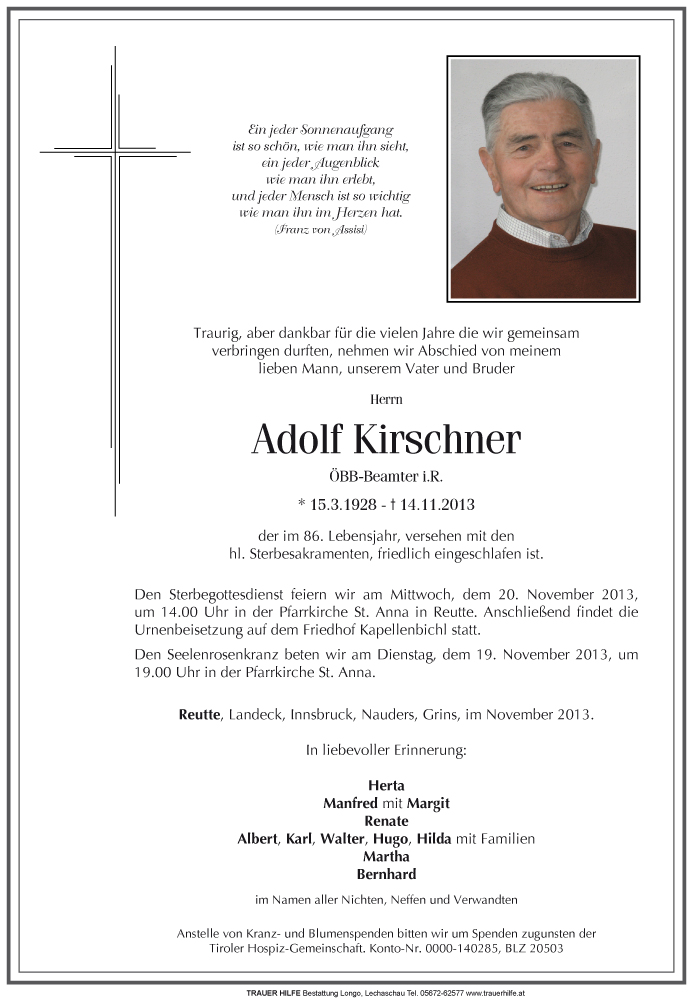 Meine aufrichtige Anteilnahme und mein herzliches Beileid. Adi war über die vielen Jahre unserer gemeinsamen Zusammenarbeit ein entgegenkommender und besonders liebenswerter Freund.