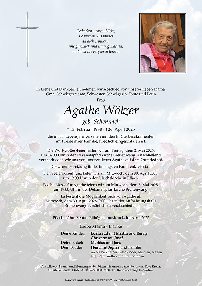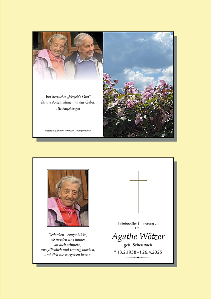 Kondolenzbuch für Agathe Wötzer