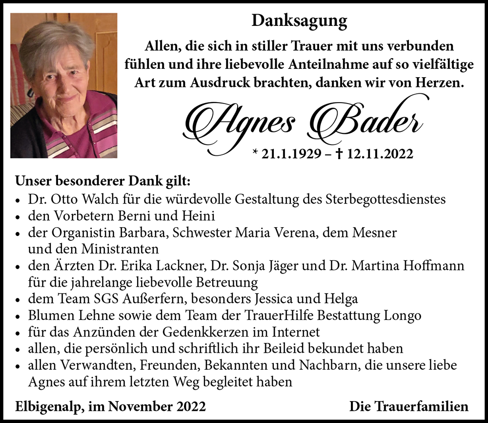 Kondolenzbuch für Agnes Bader