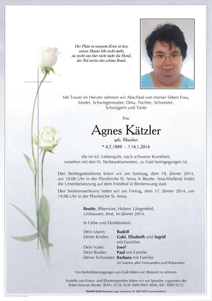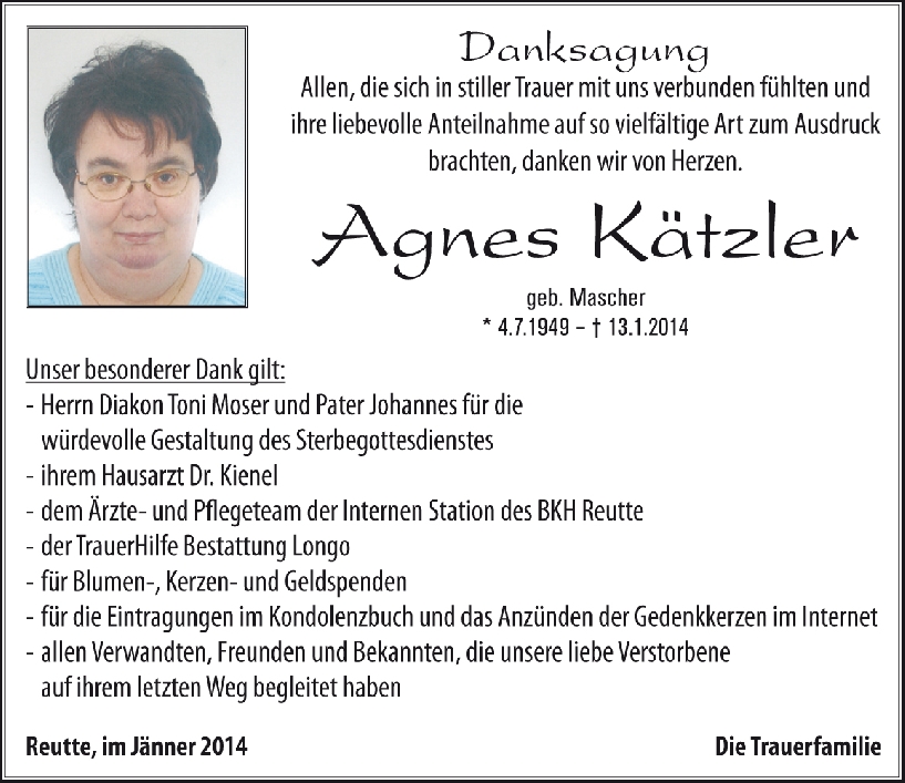 Kondolenzbuch für Agnes Kätzler