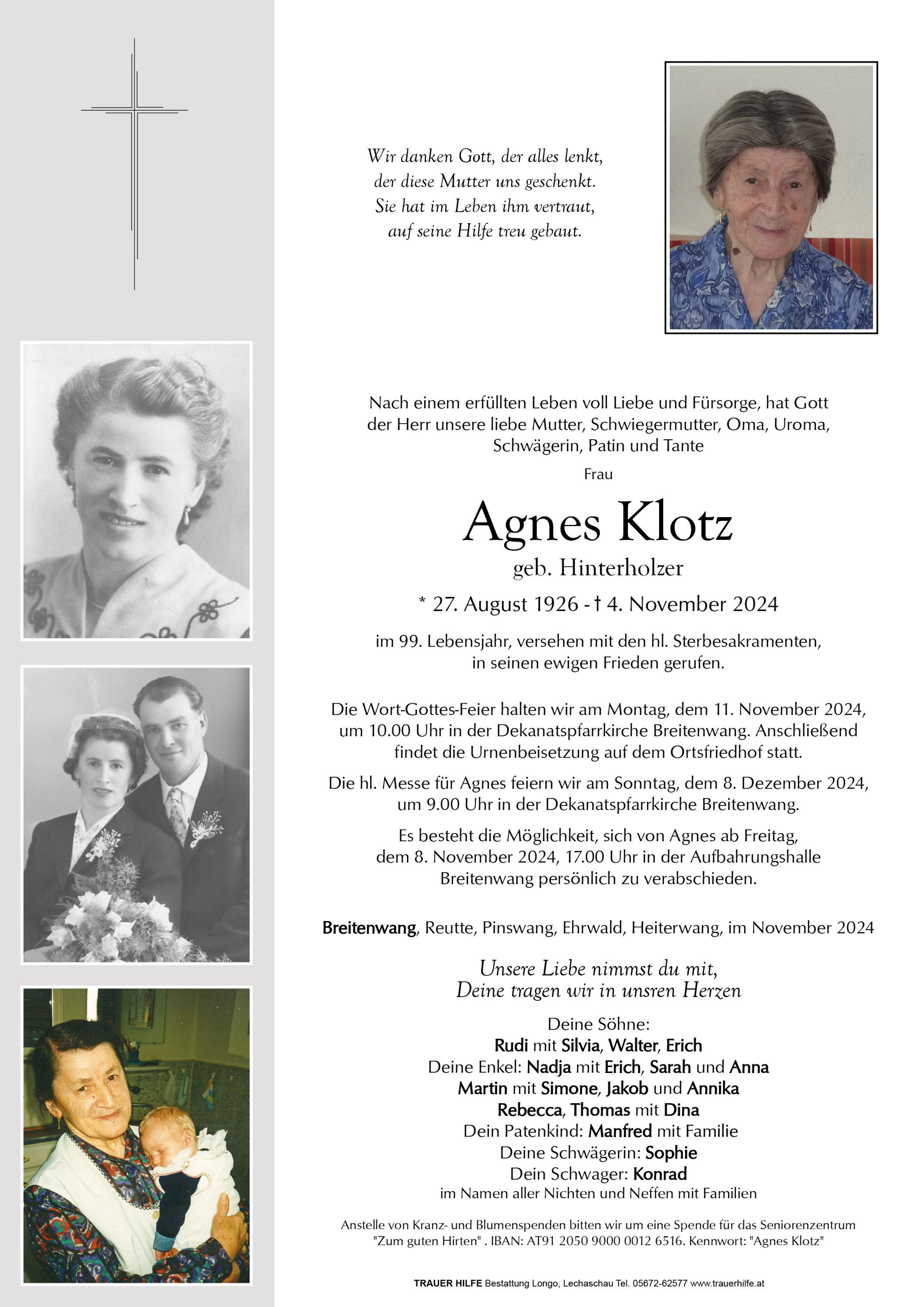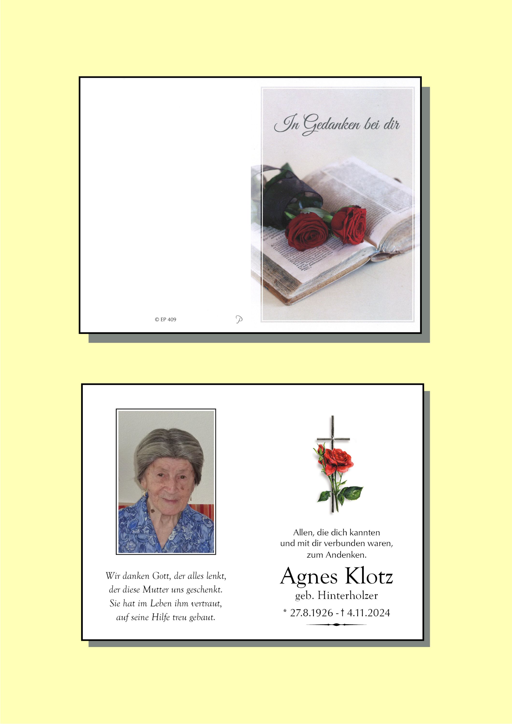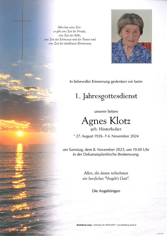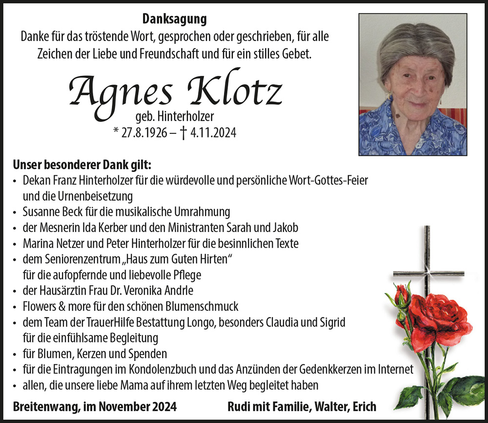 Kondolenzbuch für Agnes Klotz