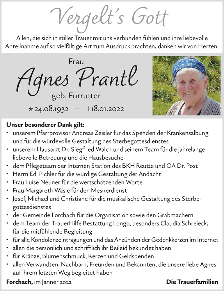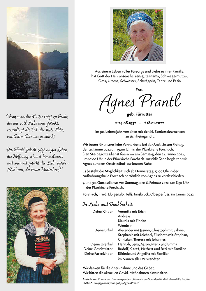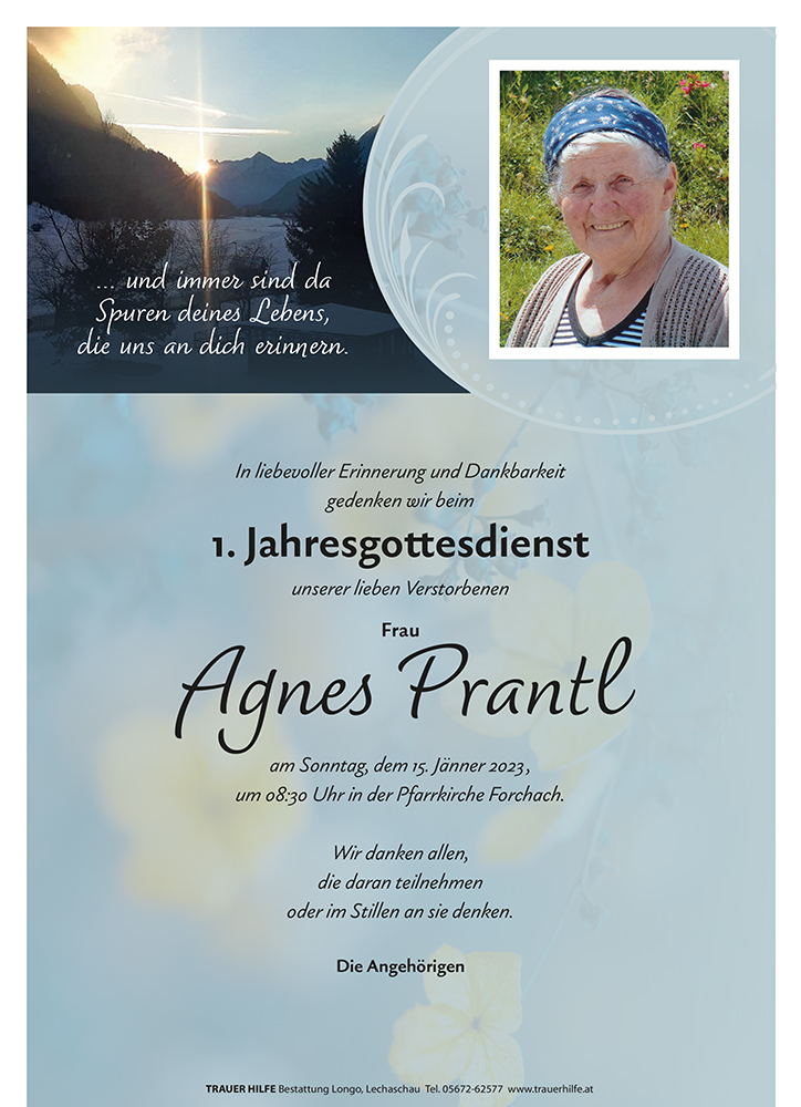 Kondolenzbuch für Agnes Prantl