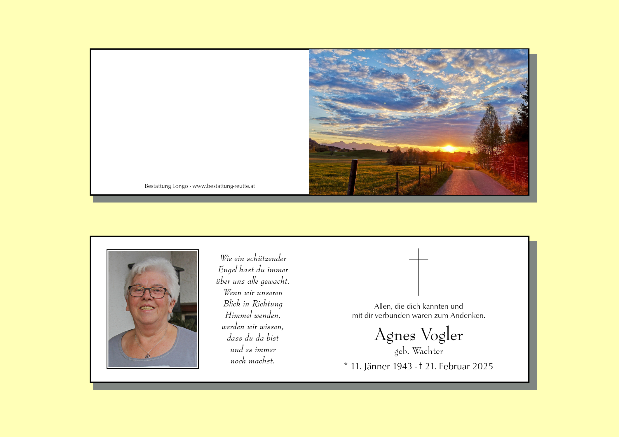 Mit Agnes müsst ihr das Herz eurer Familie weiterziehen lassen in ihre ewige Heimat. Trauert gemeinsam um sie. Erzählt euch von den schönen Momenten, die ihr mit ihr erleben durftet. So bleibt sie euch nahe in euren Herzen.