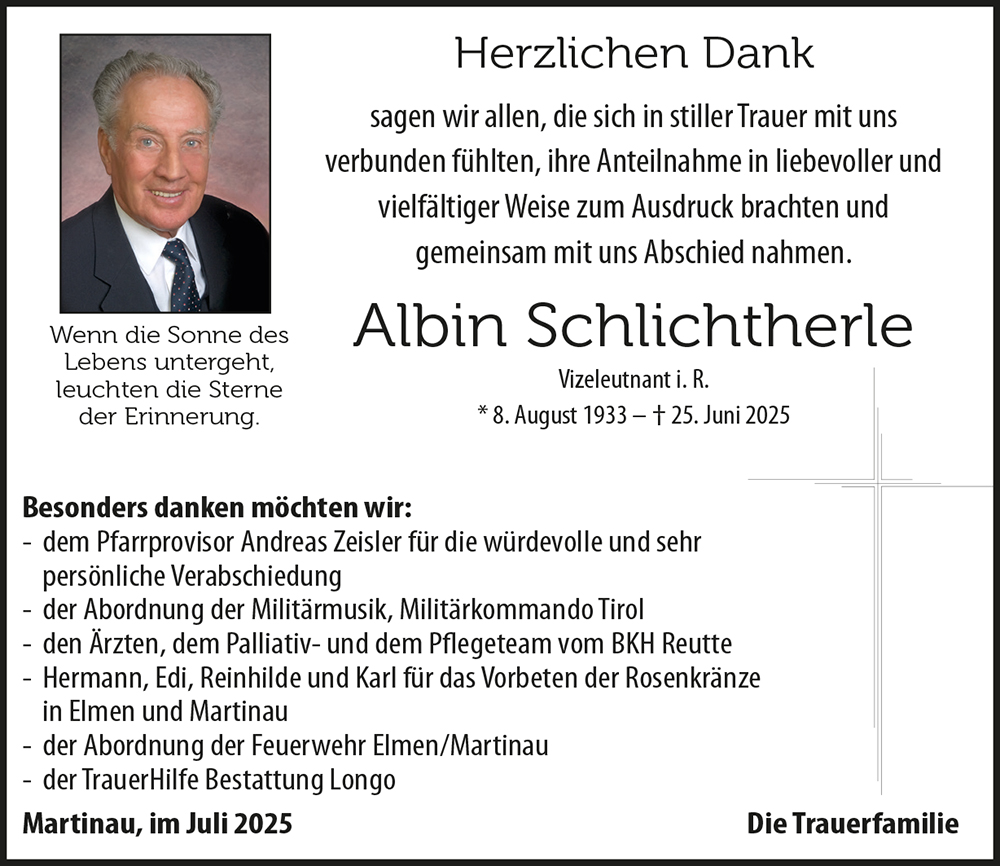Kondolenzbuch für Albin Schlichtherle