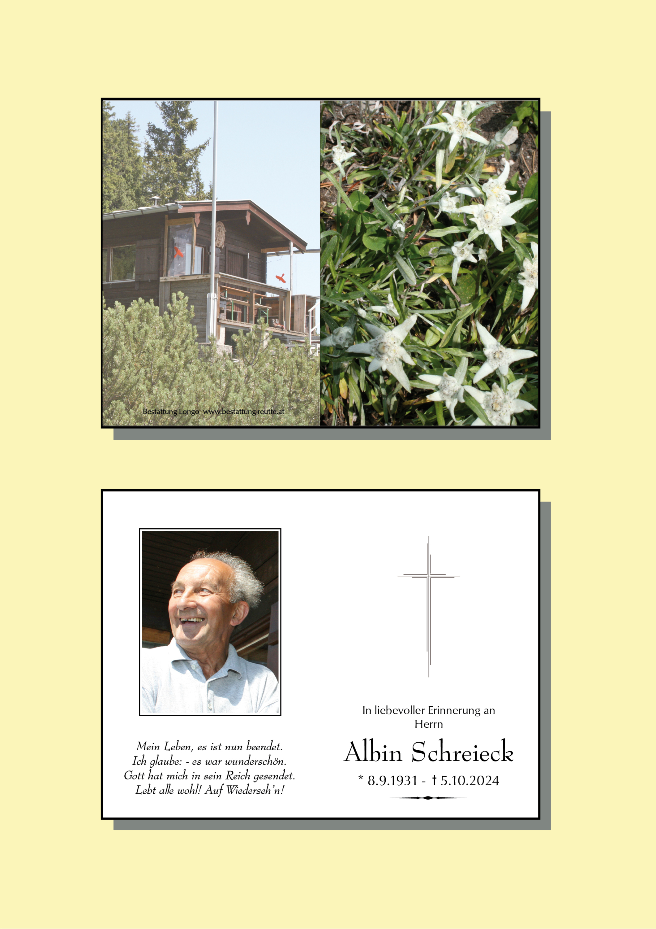 Kondolenzbuch für Albin Schreieck