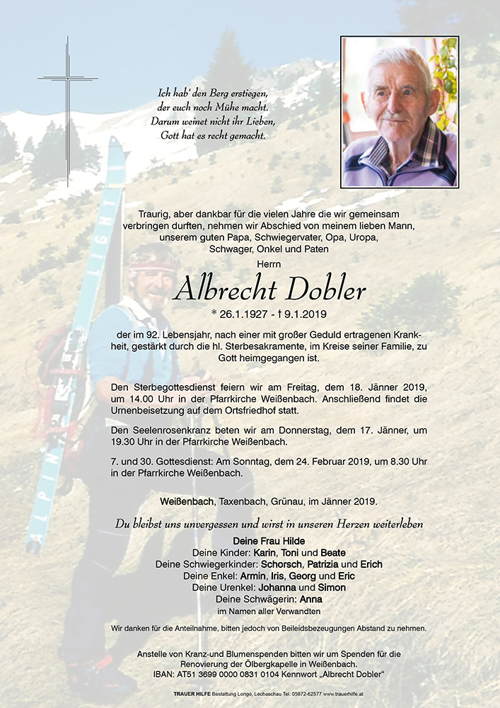 In manchen Situationen ist es kaum möglich, Worte des Trostes zu finden. Sehr betroffen vom Heimgang von Albrecht, möchten wir euch unser tiefstes Mitgefühl aussprechen.