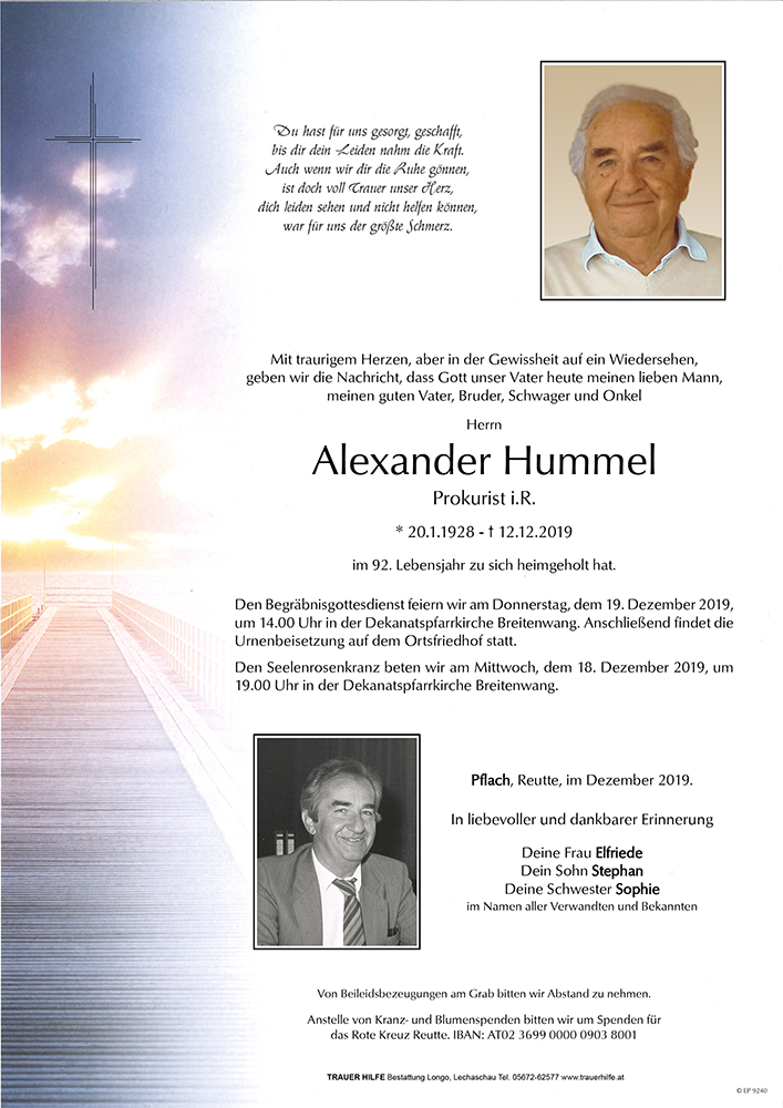 Sehr geehrte Frau Hummel, lieber Stephan, liebe Trauerfamilie,