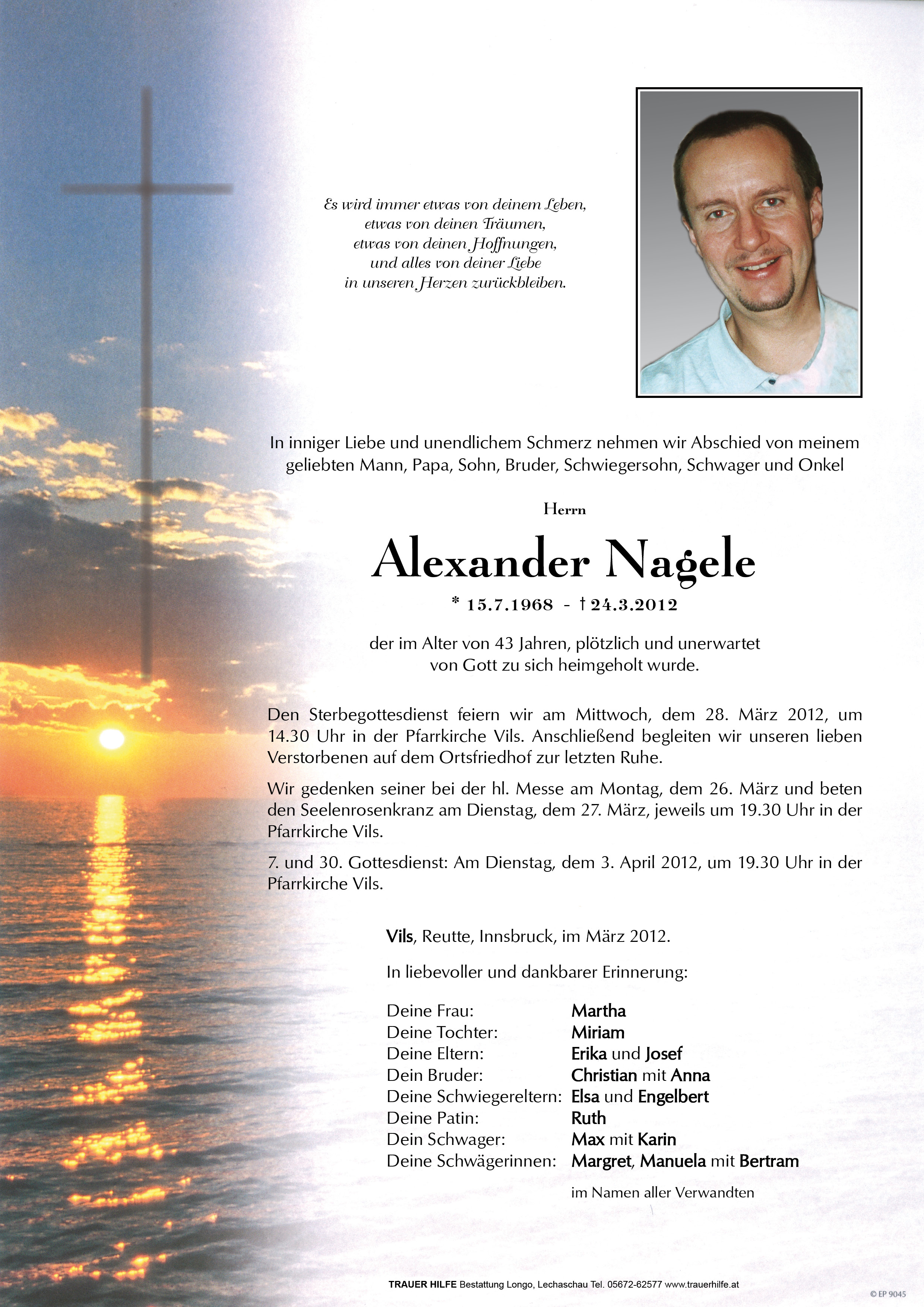 fassungslos und tieferschüttert habe ich vom plötzlichen Tod von Alexander gehört. Es ist schwer Euch Trost zu spenden, weil der Schmerz so unendlich schwer auf die Seele drückt.