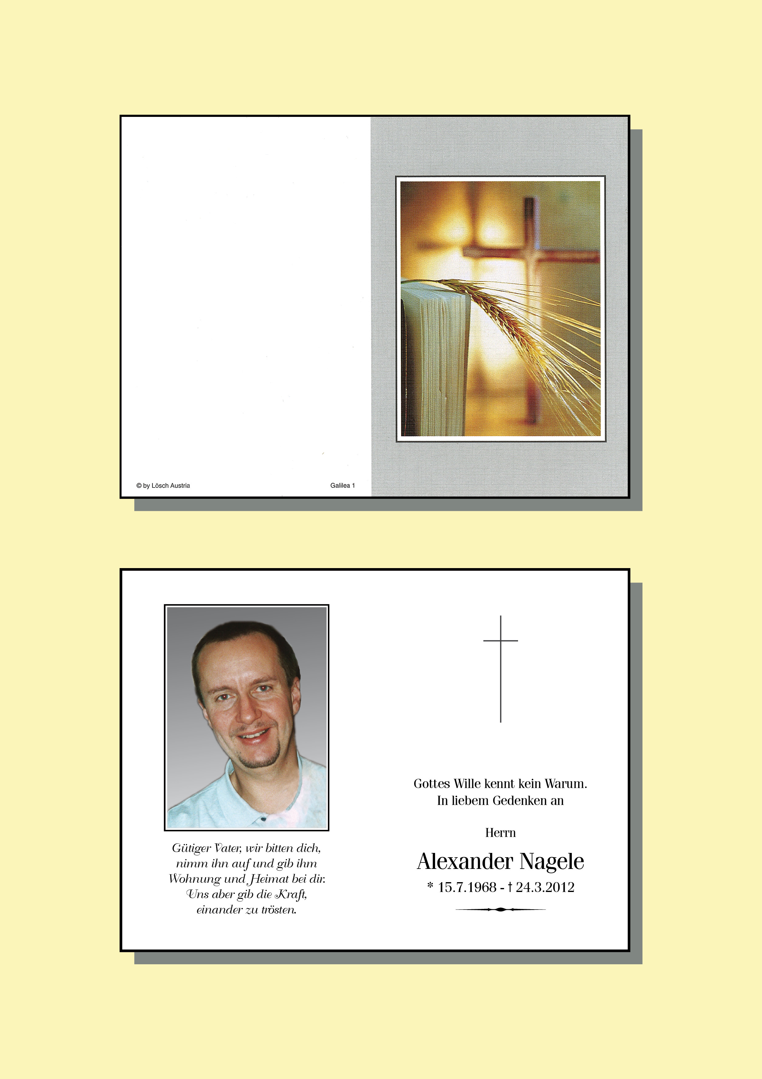 Der Schöpfer nahm, was er mir gab,zurück in seine Hände.Ich beuge mich im Schmerz vor dem,der Anfang ist und Ende.