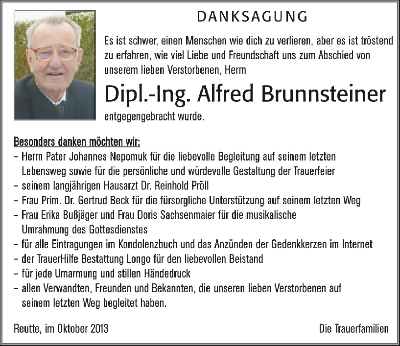 Mein Bruder Roland Beirer hat uns vom Ableben des D:I:Brunnsteiner informiert.