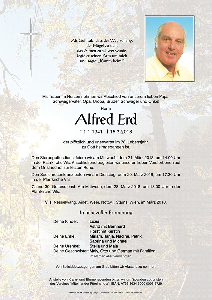Kondolenzbuch für Alfred Erd