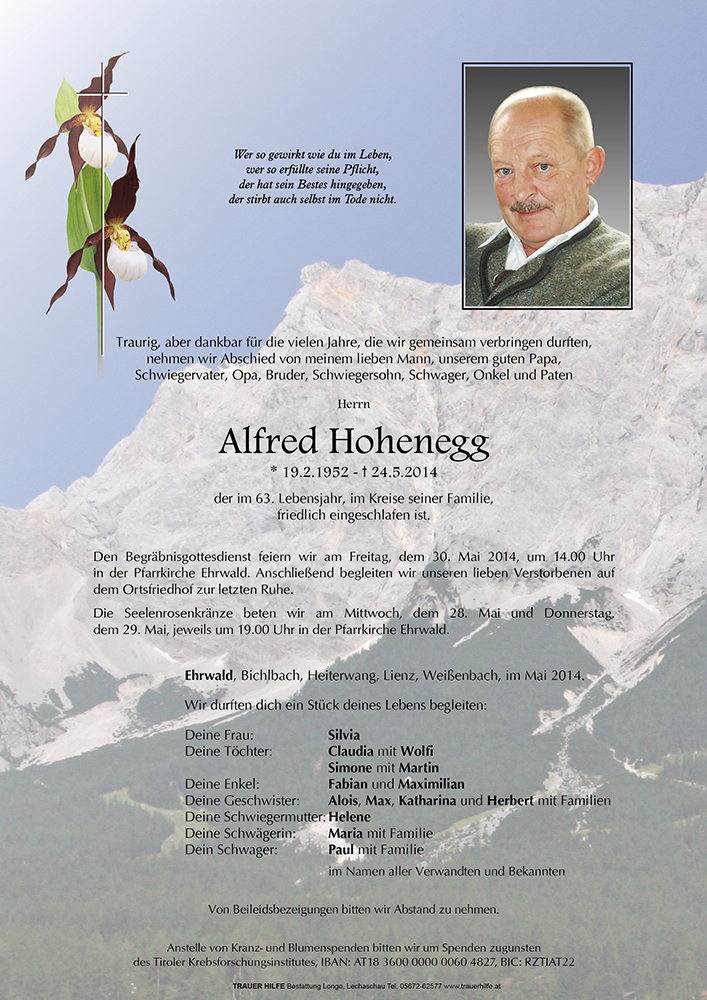 Liebe Trauerfamilie, herzlichste Anteilnahme von uns. Fredi wird uns unvergessen bleiben. Es ist ein Teil von Ehrwald von uns gegangen. Erwar ein richtiges Original. Pfiat Di Fredi.