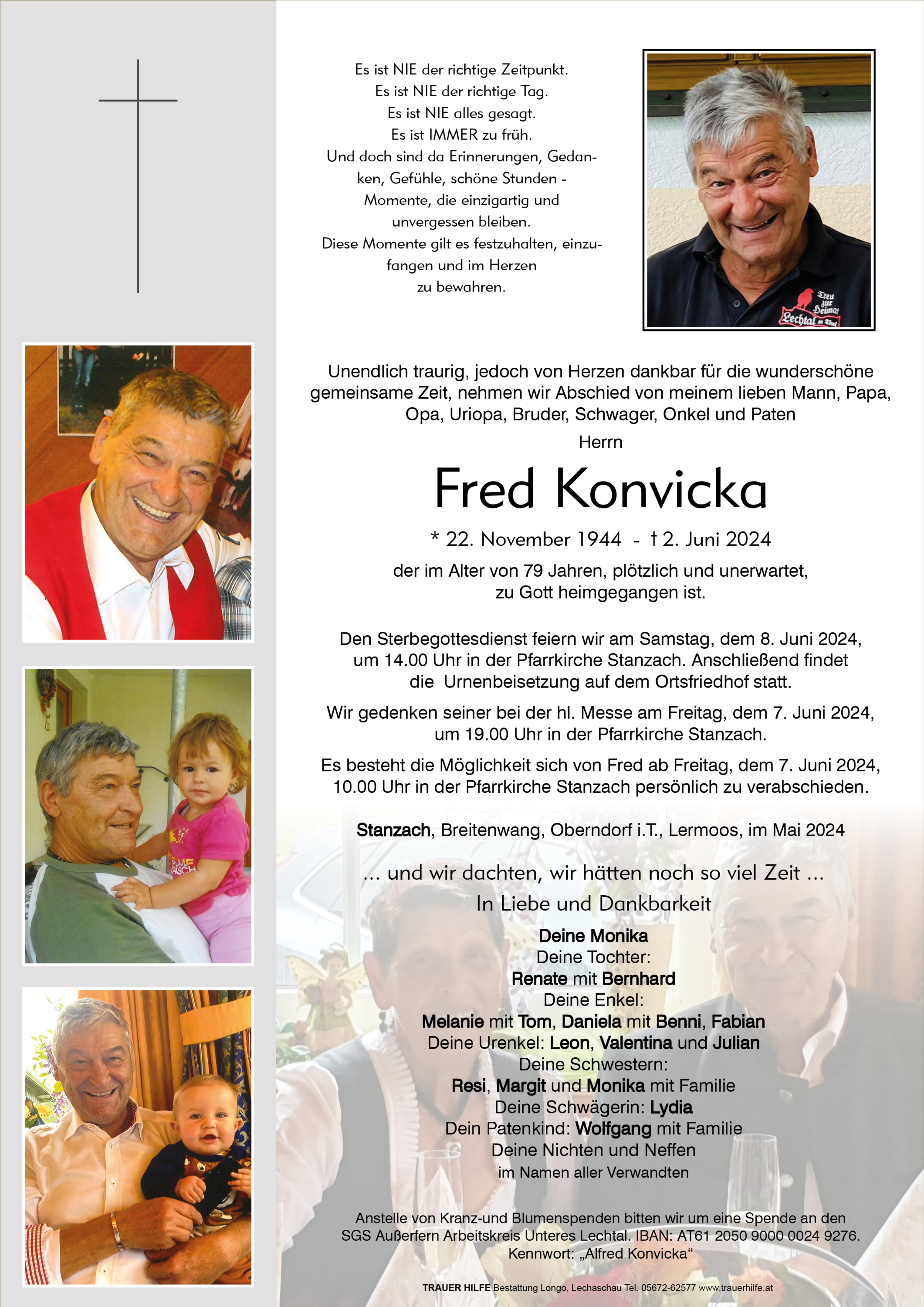 Wir werden Fred immer in guter Erinnerung behalten. Viele schöne Momente durften wir mit ihm erleben. Danke Opa Fred