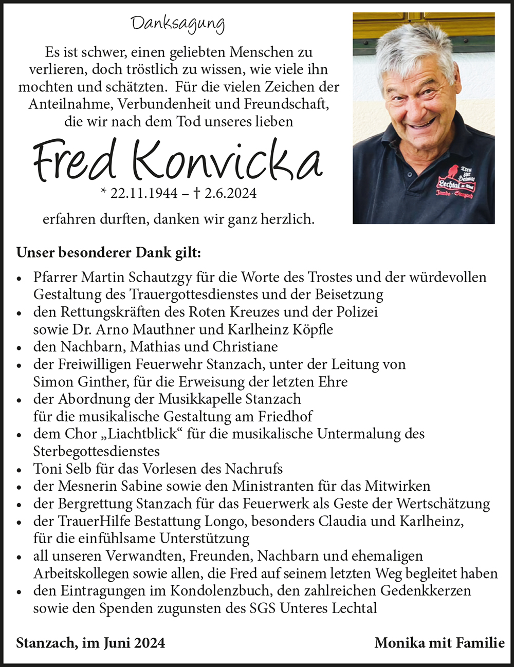 Die Menschen, die von uns gehen und die wir lieben, verschwinden nicht. Sie sind immer an unserer Seite, ungesehen, ungehört und dennoch immer ganz nah bei uns. Für immer geliebt und für immer vermisst, bleiben sie für immer in unserem Herzen. Wir werden Fred in guter Erinnerung behalten.