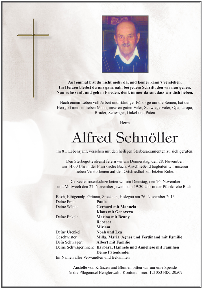 Kondolenzbuch für Alfred Schnöller