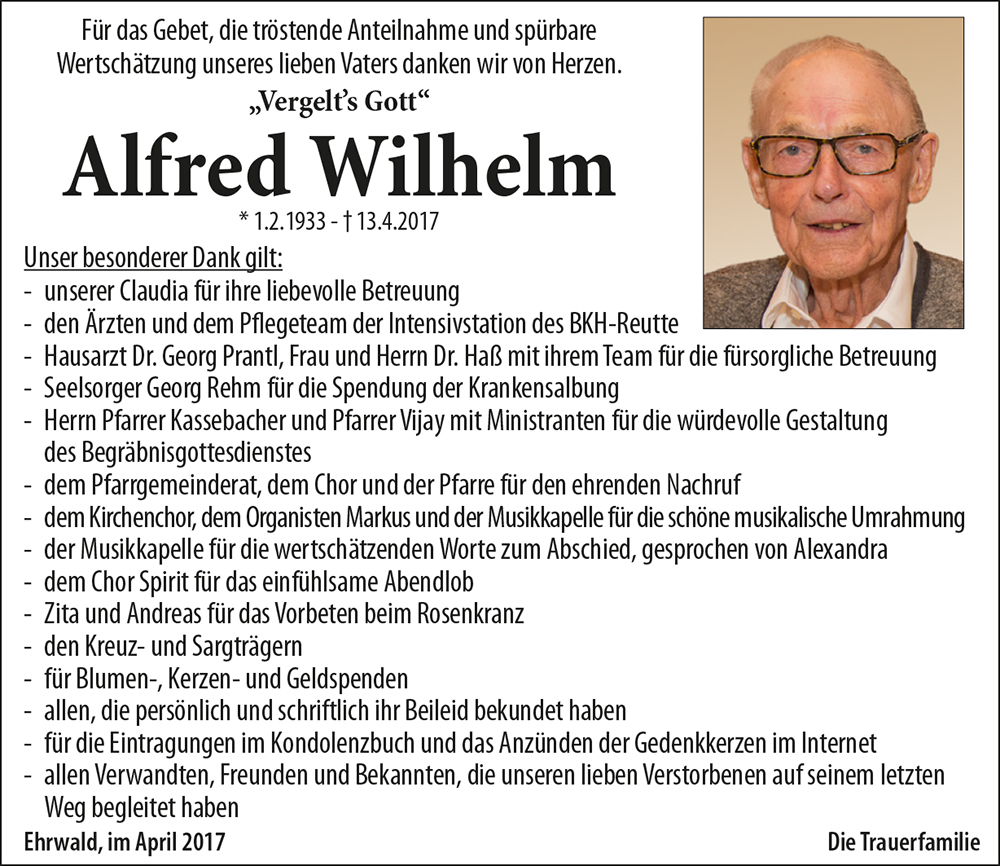 Sehr geehrte Familie Wilhelm ,
