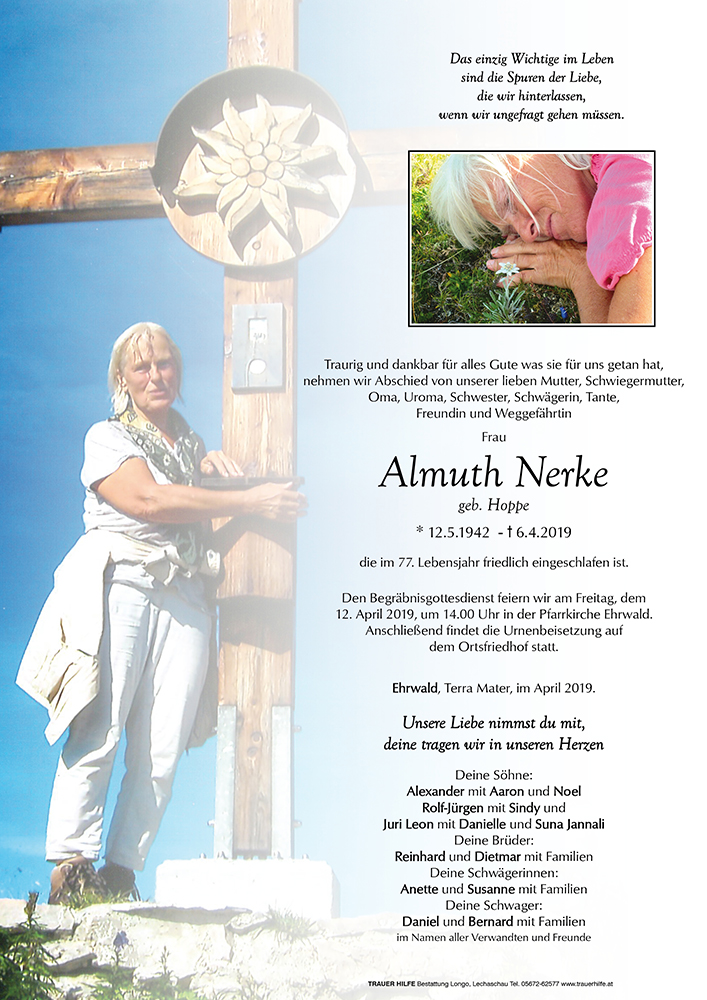Es tut uns leid, dass Almuth nicht mehr unter uns sein darf, wir werden sie vermissen.