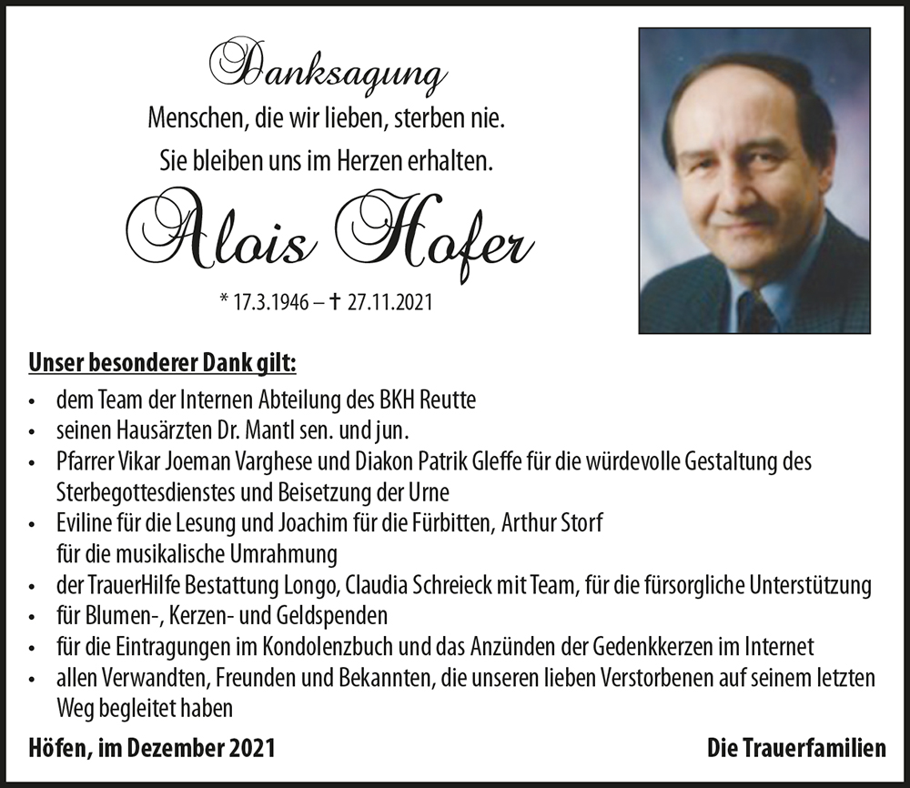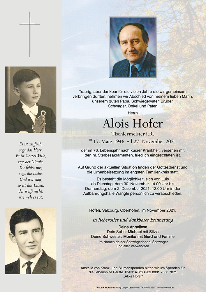 Kondolenzbuch für Alois Hofer