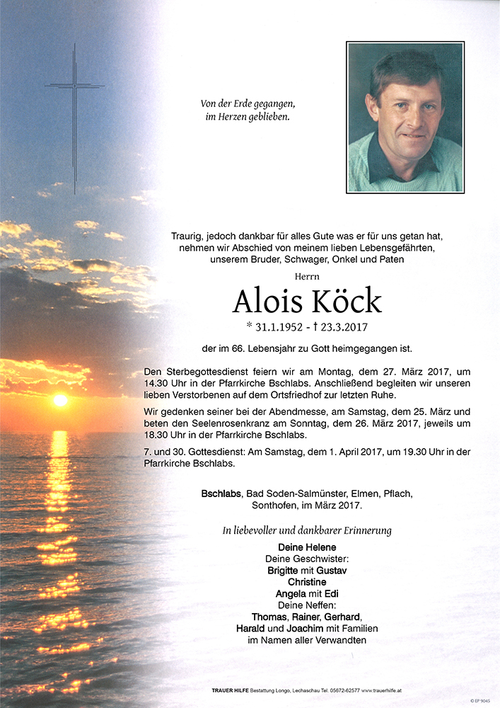 Kondolenzbuch für Alois Köck
