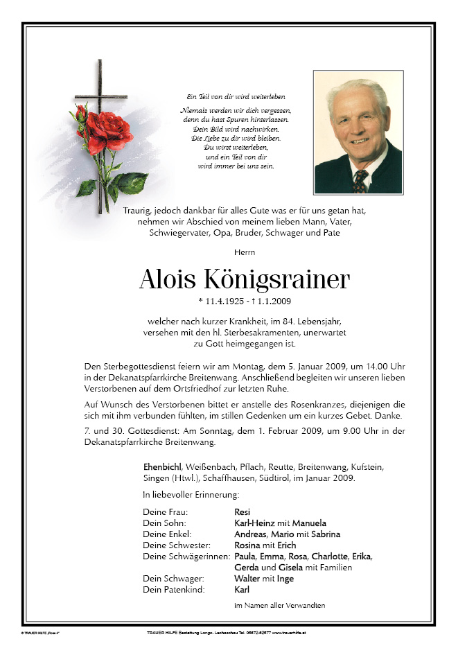 13.12.1901 01.01.2009 Ehenbichl Alois Königsrainer Action Parte Gedenkkerzen Kondolenzen Parte Gedenkkerzen Kondolenzen Parte herunterladen Gedenkkerzen für Alois Königsrainer 0 Einträge Kerze anzünden Ihre Gedenkkerze fürAlois Königsrainer Ihr Name* Farbe auswählen Ihre Nachricht oder Name* E-Mail-Adresse* Mit dem Klicken auf "Kerze anzünden" erklären Sie sich mit unseren Datenschutzbestimmungen einverstanden. Kondolenzbuch für Alois Königsrainer 0 Einträge Kondolenz verfassen Ihr Abschiedsgruß an Alois Königsrainer Ihr Name* E-Mail-Adresse* Ihre Nachricht* Mit dem Klicken auf "Gruß absenden" erklären Sie sich mit unseren Datenschutzbestimmungen einverstanden.