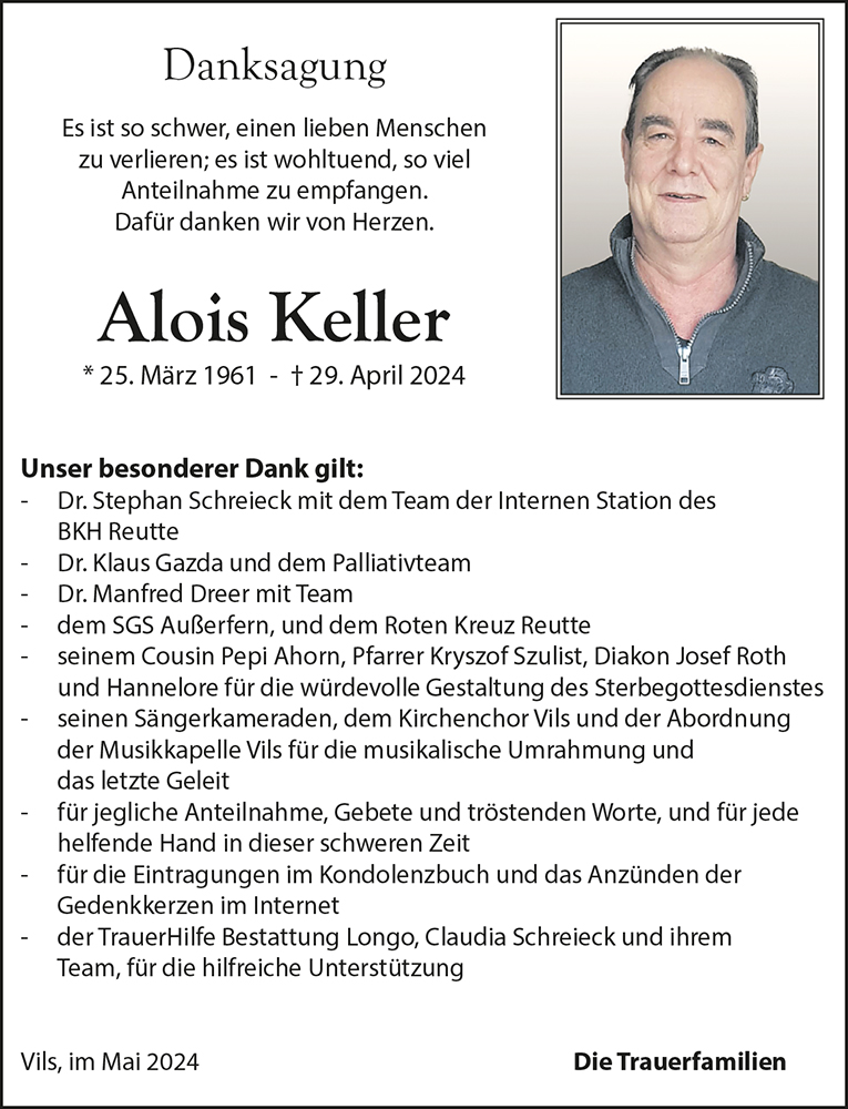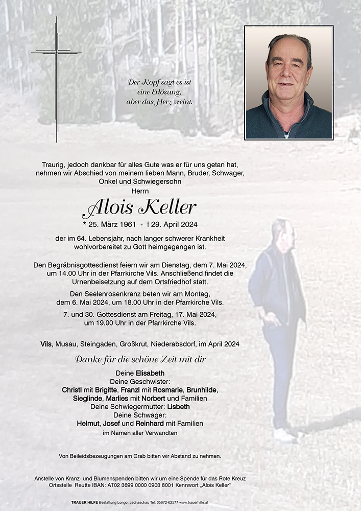 Kondolenzbuch für Alois Keller