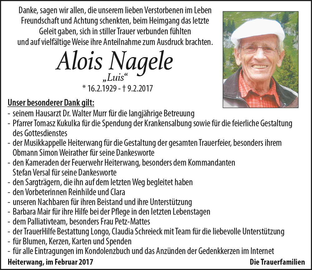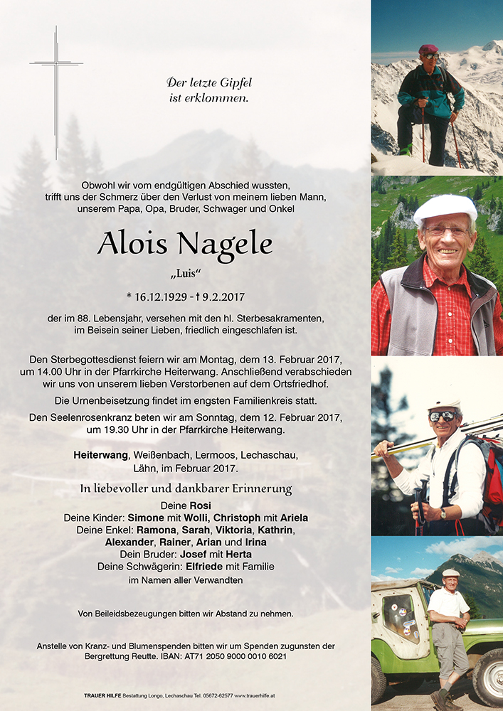 Kondolenzbuch für Alois Nagele