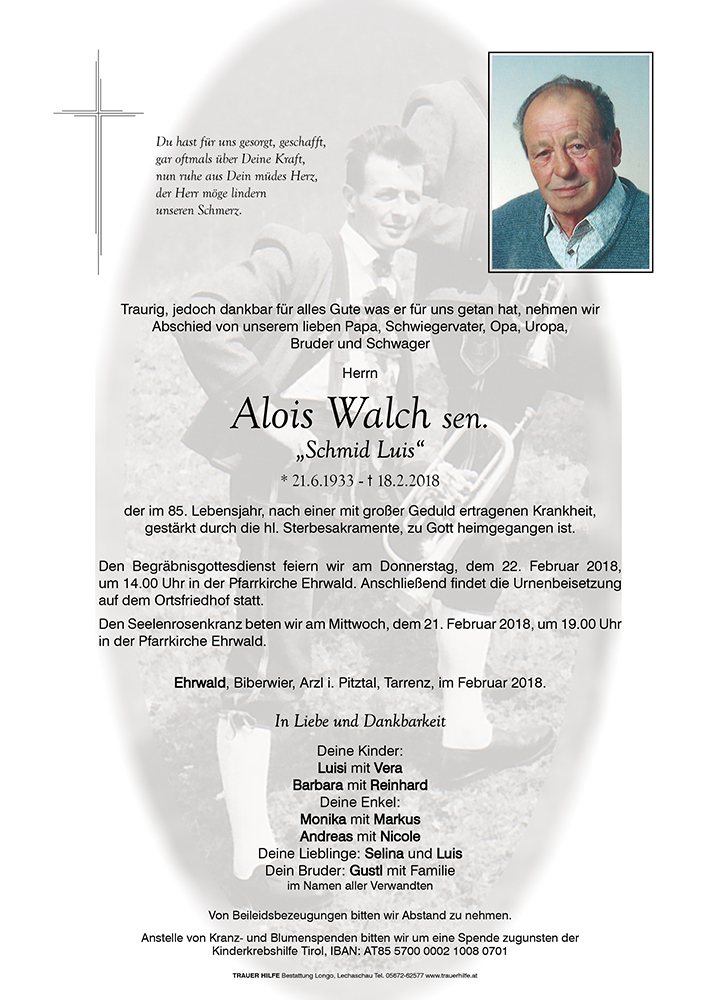 Kondolenzbuch für Alois Walch