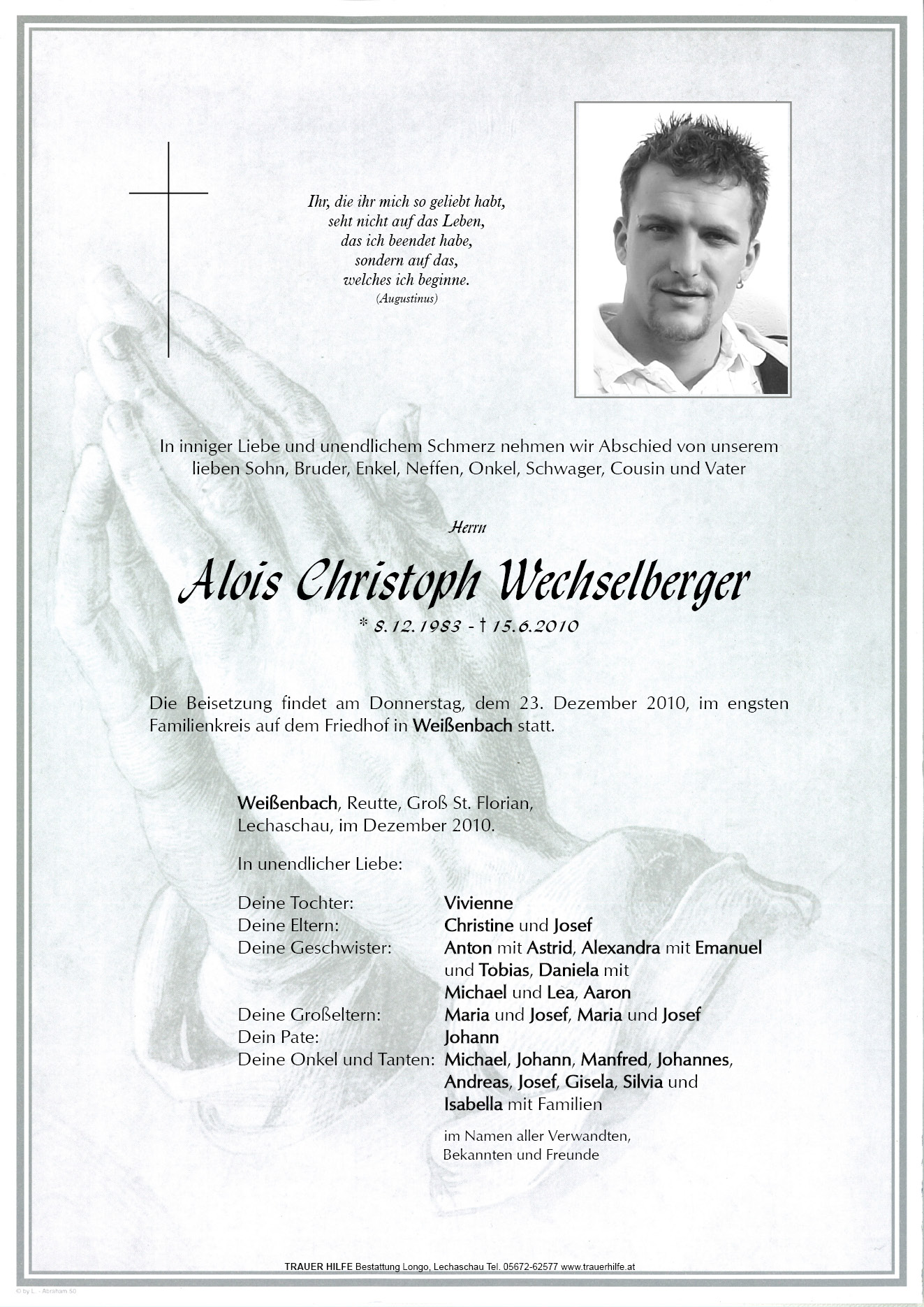 Kondolenzbuch fĂŒr Alois Wechselberger