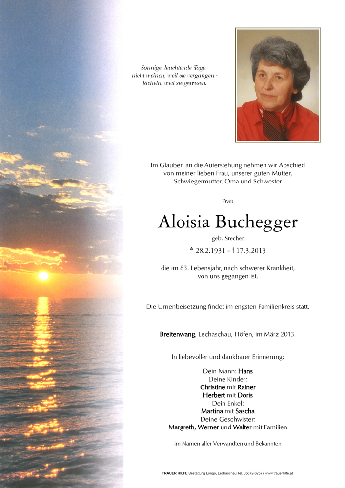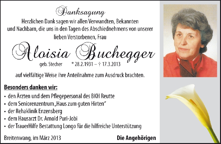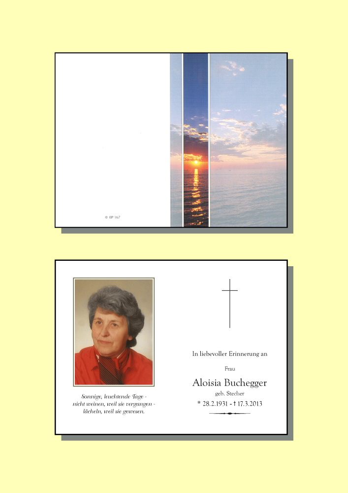 Kondolenzbuch für Aloisia Buchegger