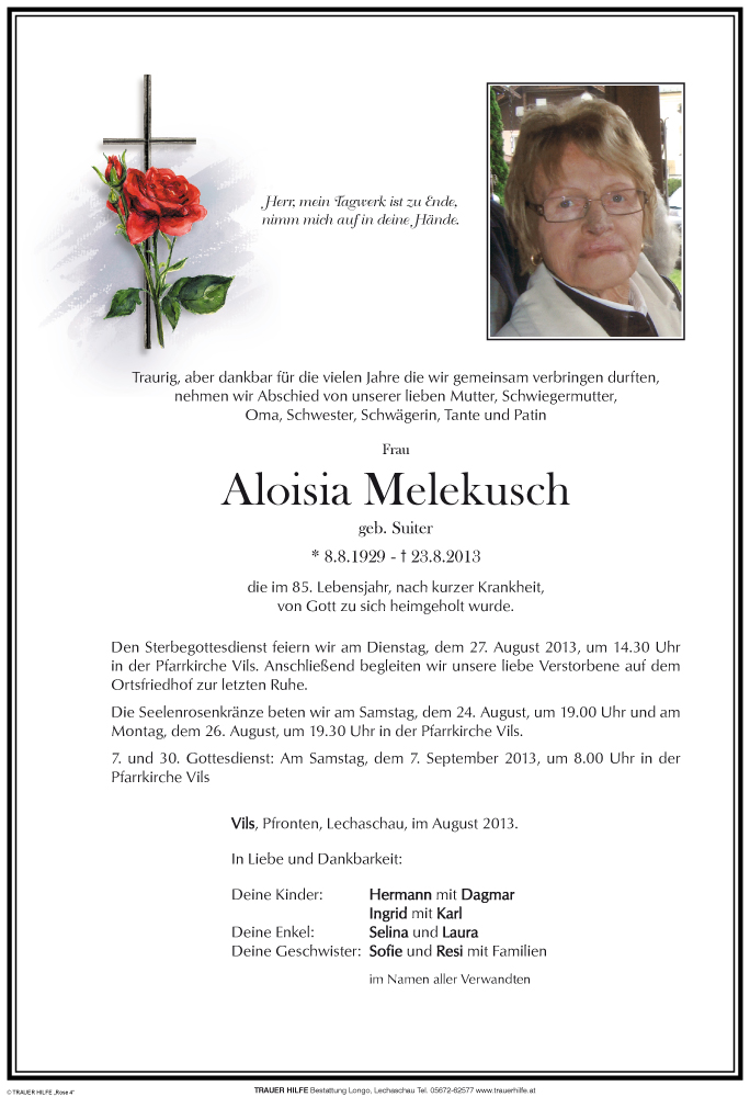 Aufrichtiges Beileid und Anteilnahme zum Tode euer Mutter senden Reinhold Obermoser mit Familie aus Kössen.