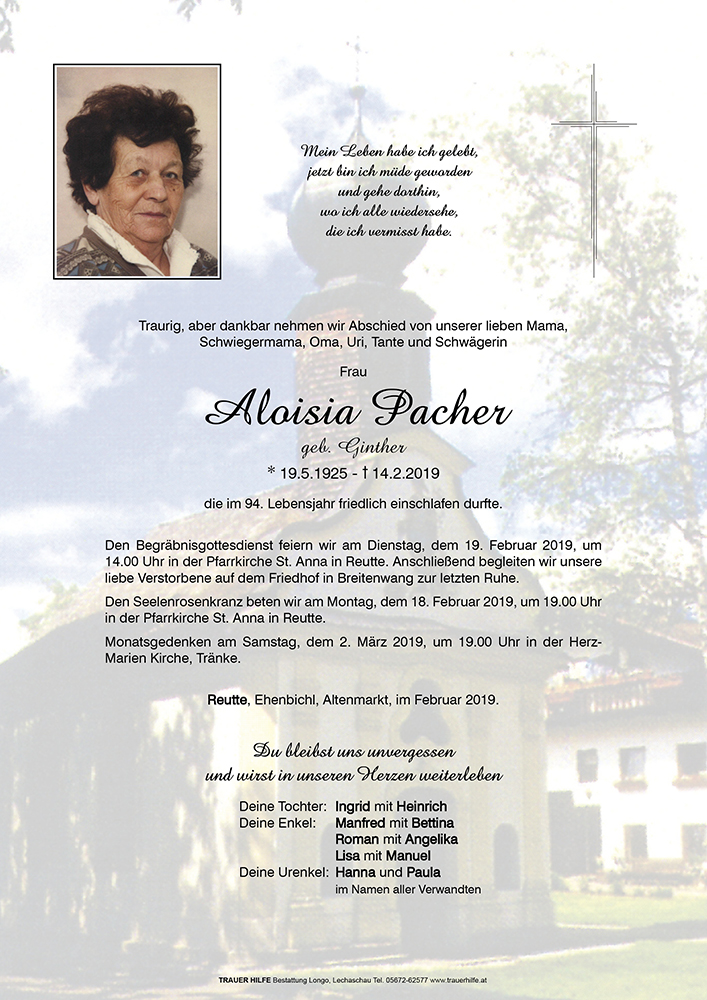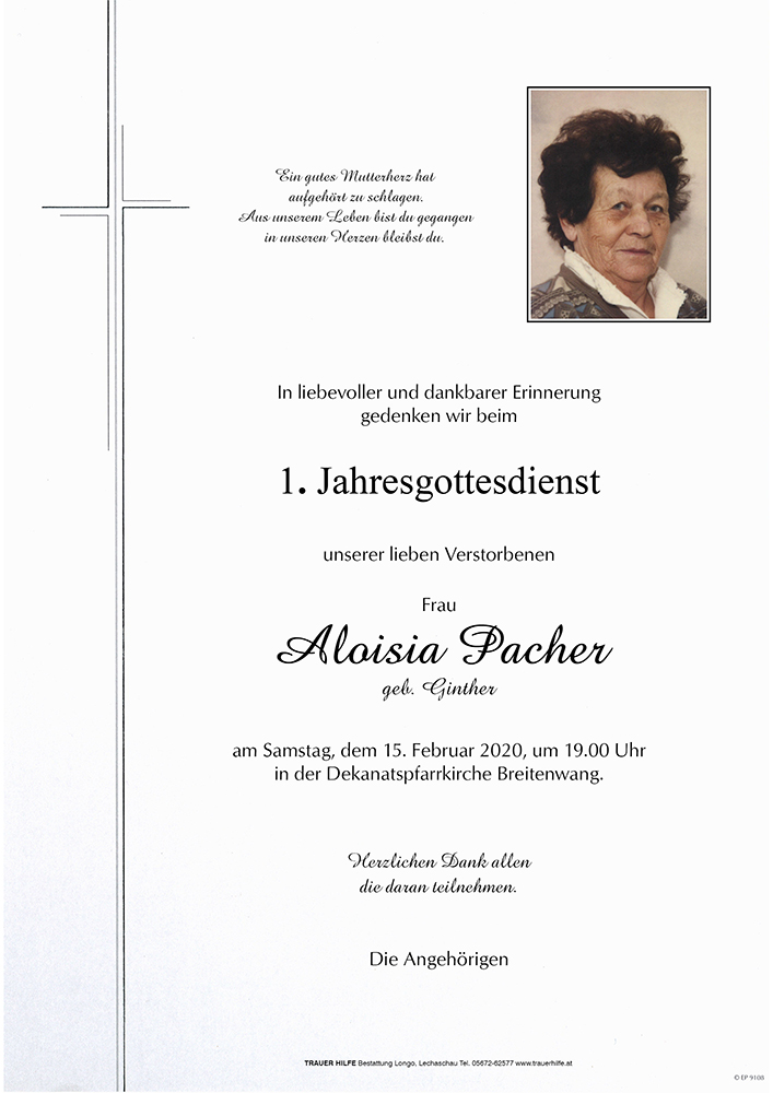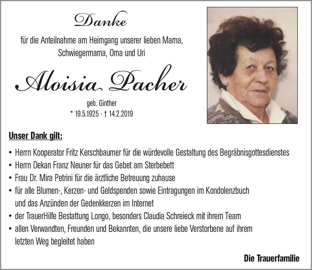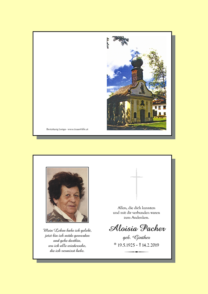 Kondolenzbuch für Aloisia Pacher