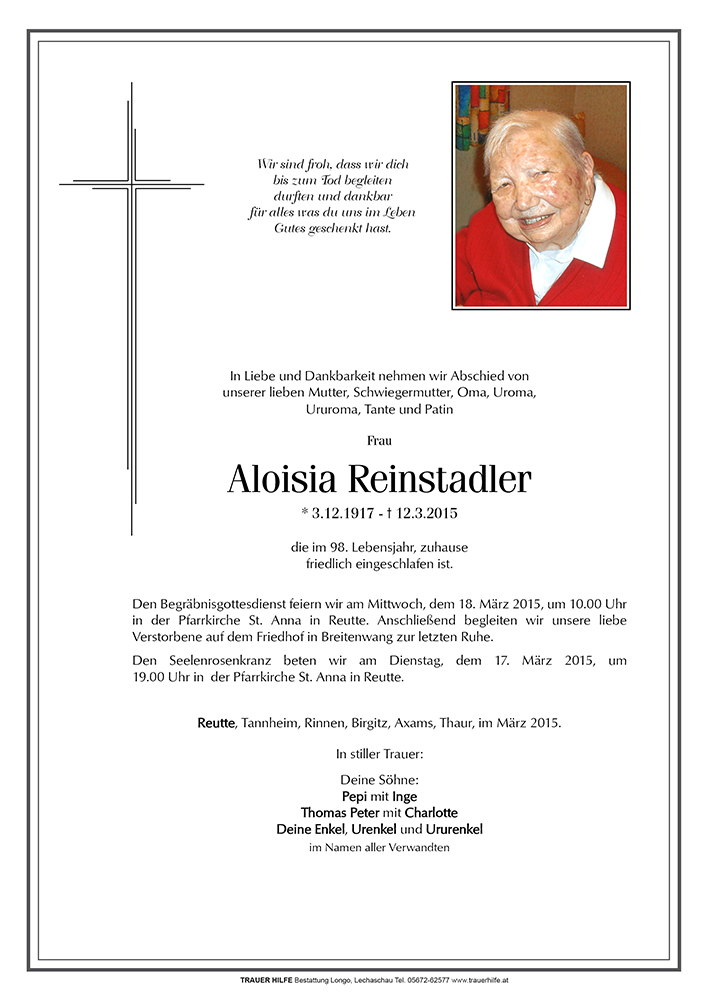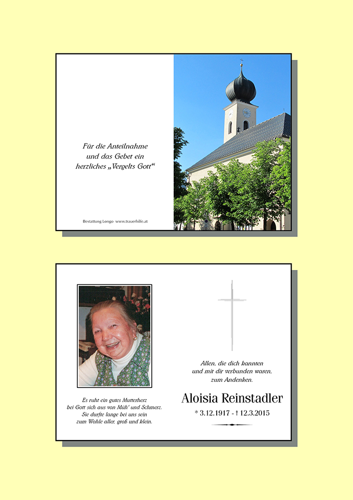 Kondolenzbuch für Aloisia Reinstadler