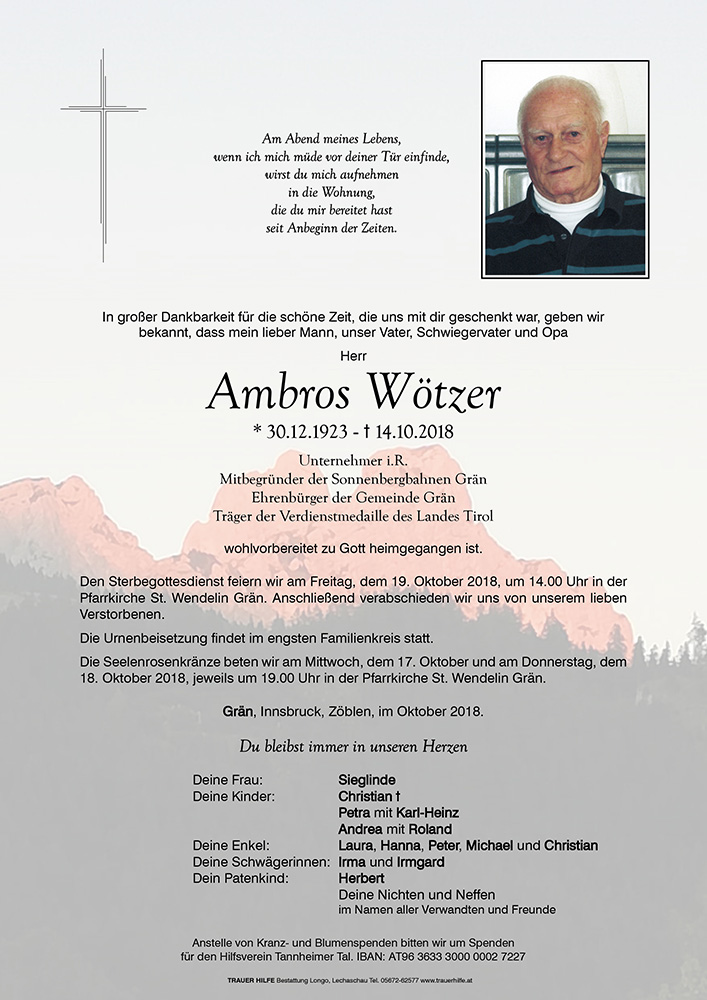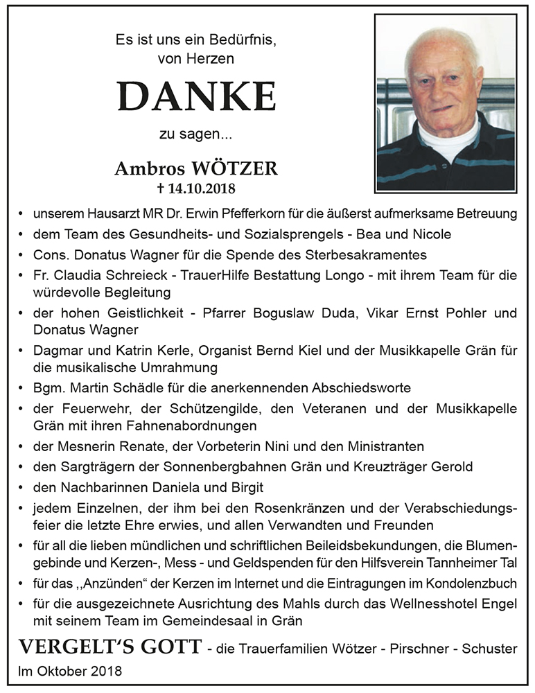 "Wir blicken mit Freude und Dankbarkeit auf die gemeinsame Zeit. Der Tod kann uns von Menschen trennen, aber er kann uns nicht nehmen, was uns mit ihnen verbunden hat."