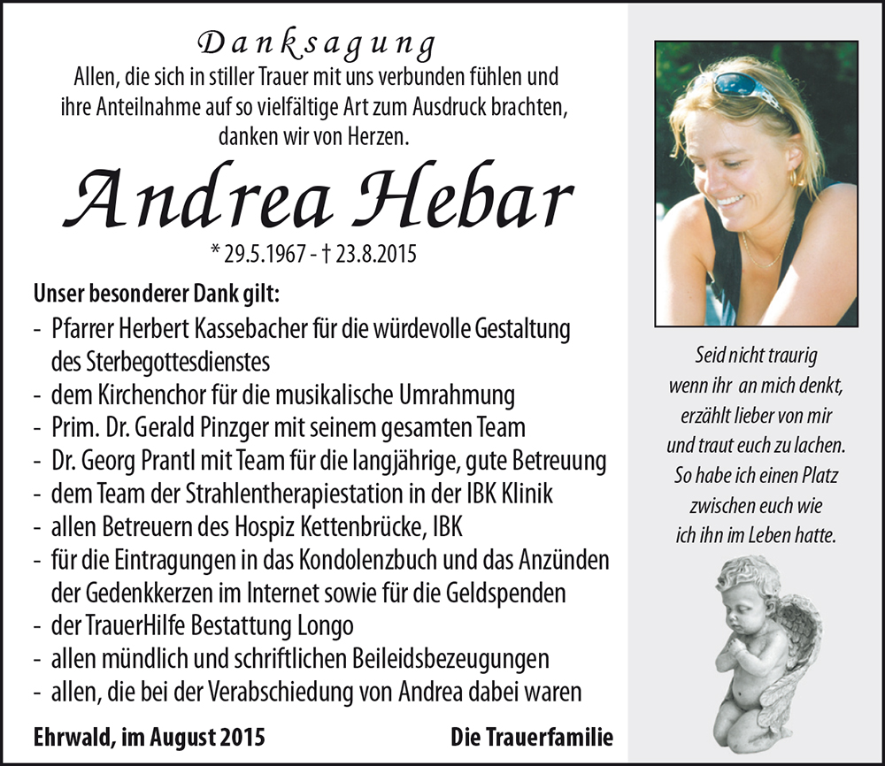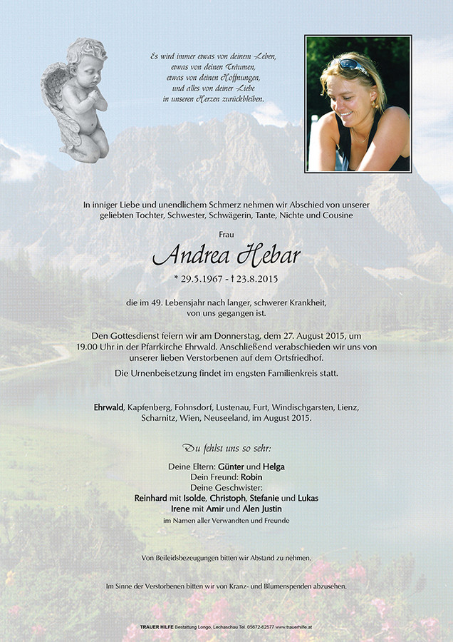 Kondolenzbuch für Andrea Hebar