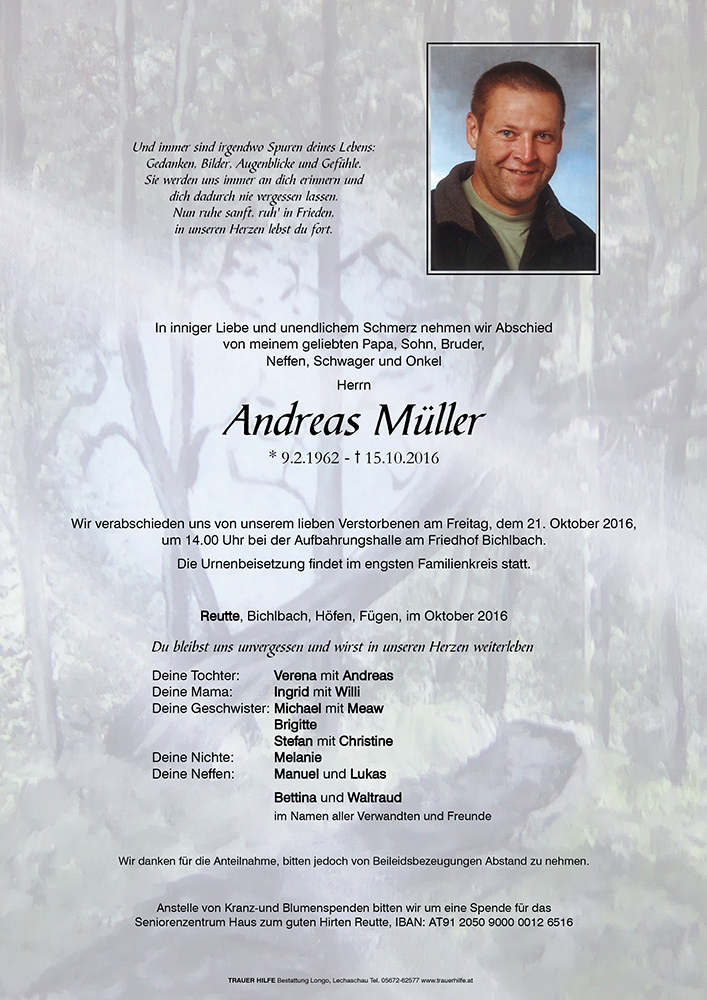 Kondolenzbuch für Andreas Müller