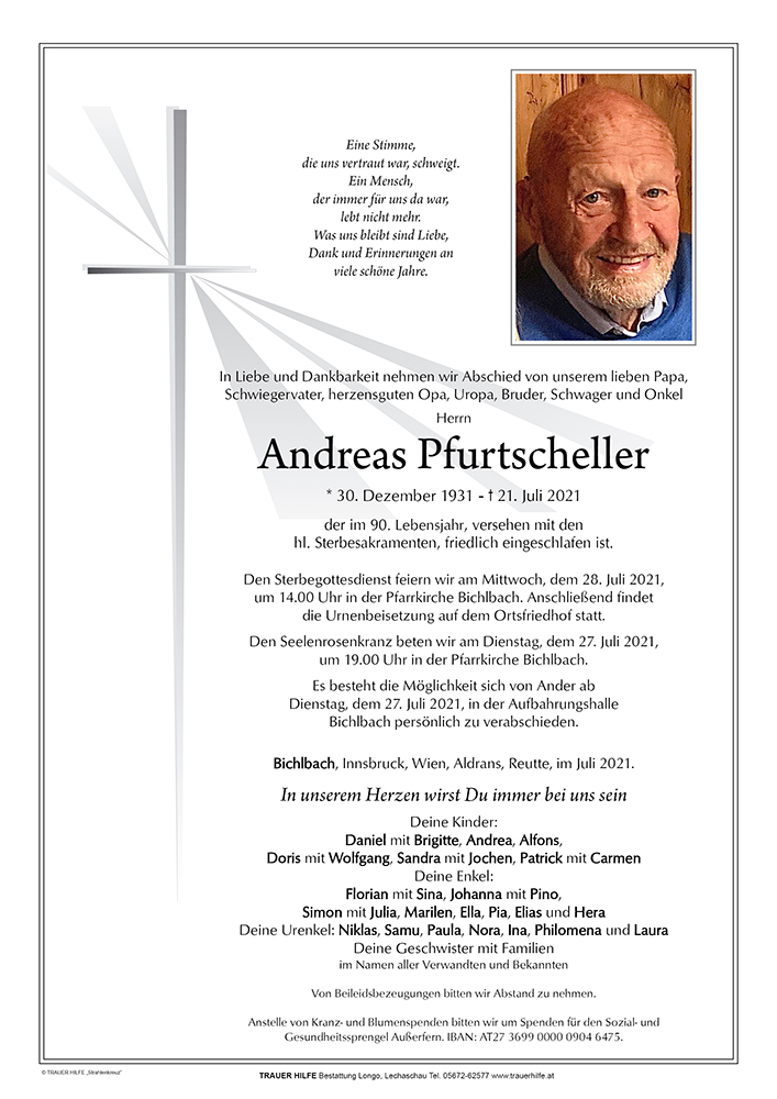 Kondolenzbuch für Andreas Pfurtscheller